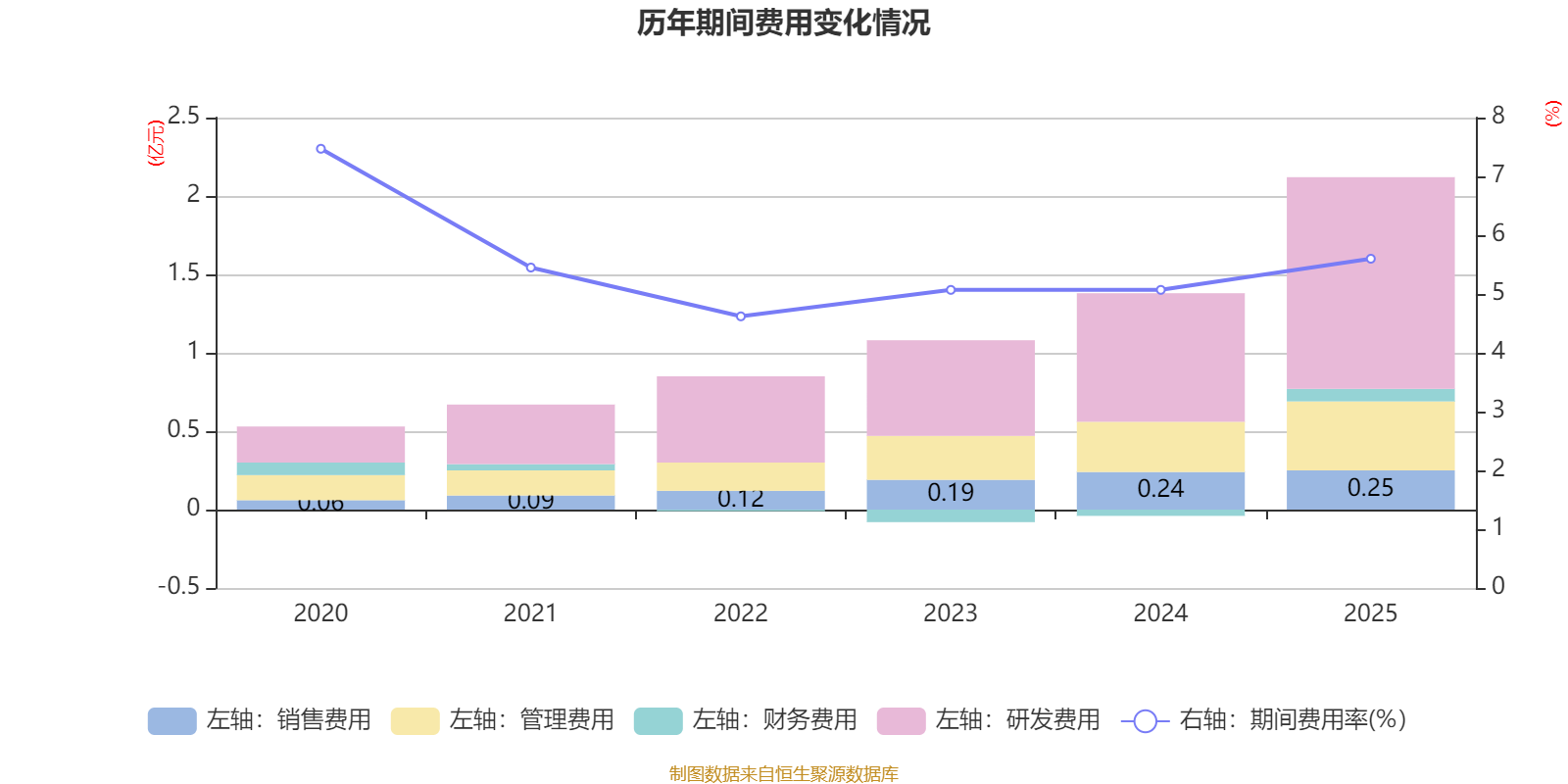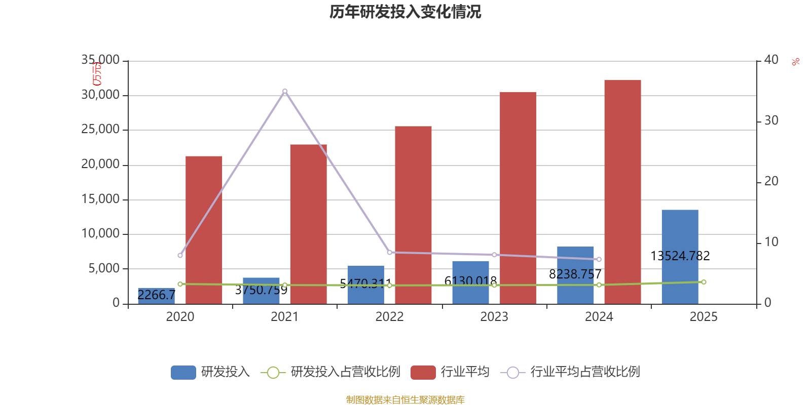 2025年全年,公司研发投入金额为1.35亿元,同比增长64.16%;研发投入占营业收入比例为3.58%,相比上年同期上升0.47个百分点。此外,公司全年研发投入资本化率为0%。