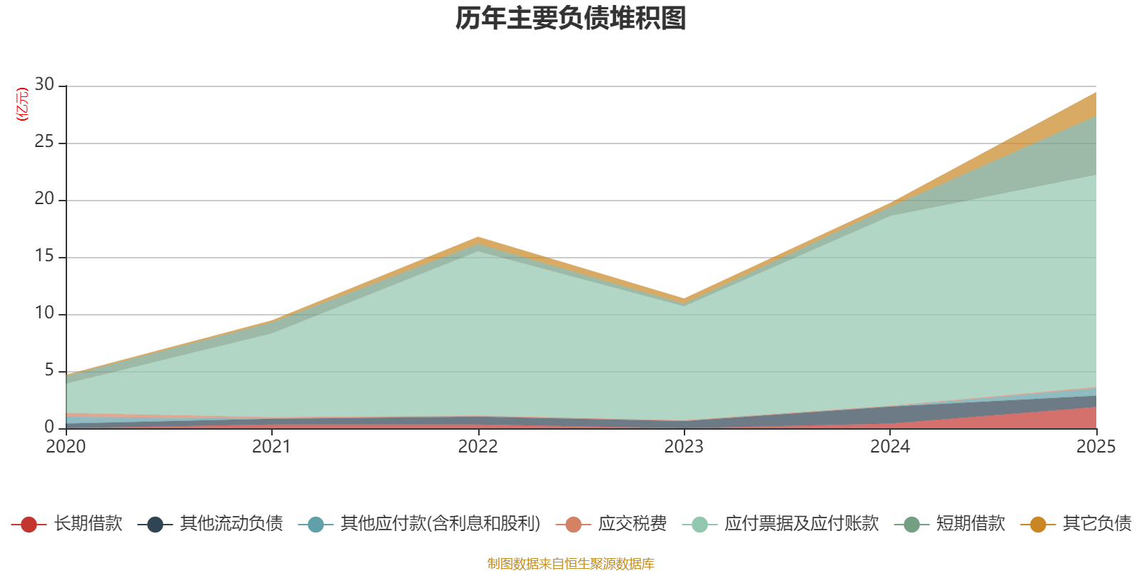 负债重大变化方面,截至2025年末,公司短期借款较上年末增加530.04%,占公司总资产比重上升7.69个百分点;应付票据及应付账款较上年末增加11.89%,占公司总资产比重下降4.51个百分点;一年内到期的非流动负债较上年末增加11523.81%,占公司总资产比重上升2.68个百分点;长期借款较上年末增加365.44%,占公司总资产比重上升2.52个百分点。
