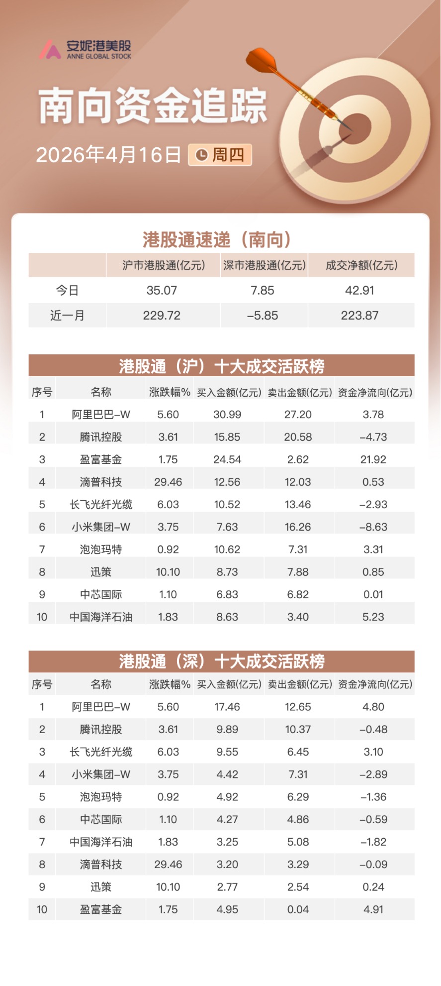行情层面,港股延续冲高势头,恒指盘中一度站上26400点,收涨1.72%。南向资金全天净流入42.91亿港元。其中,沪港股通净流入约35.07亿港元,而深港股通净流入约7.85亿港元。