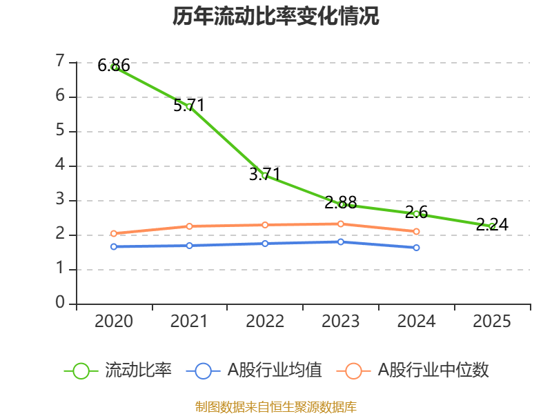 2025年,公司流动比率为2.24,速动比率为1.99。
