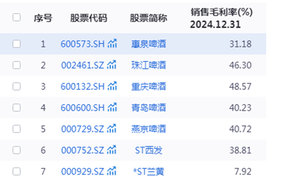 啤酒股2024年毛利率数据来源:同花顺iFinD