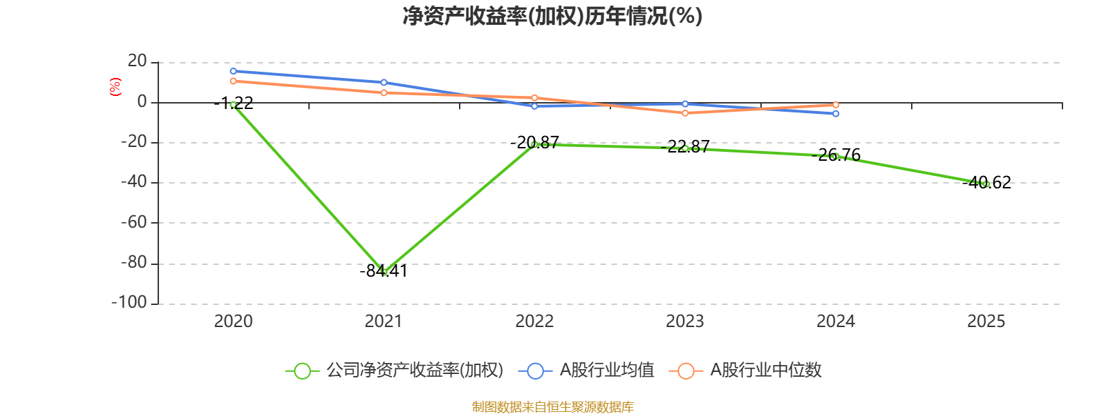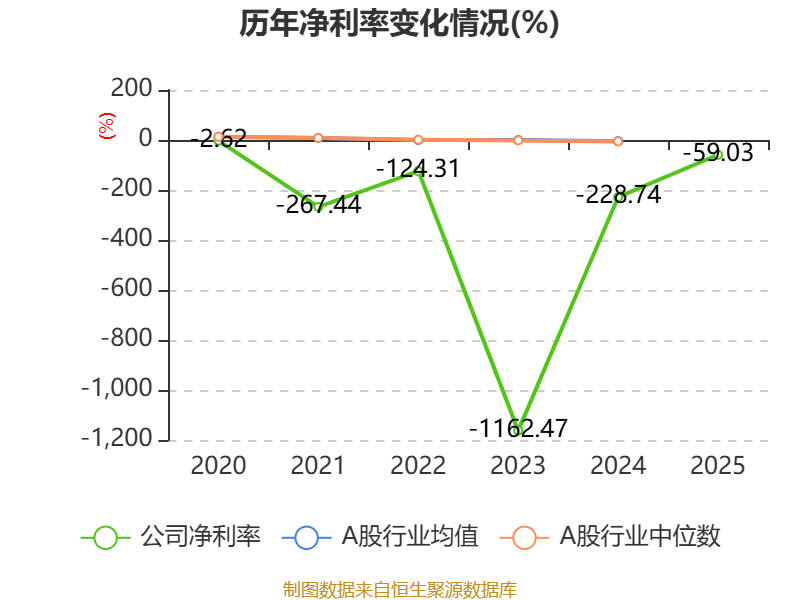数据显示,2025年公司平均净资产收益率为-40.62%,较上年同期下降13.86个百分点。