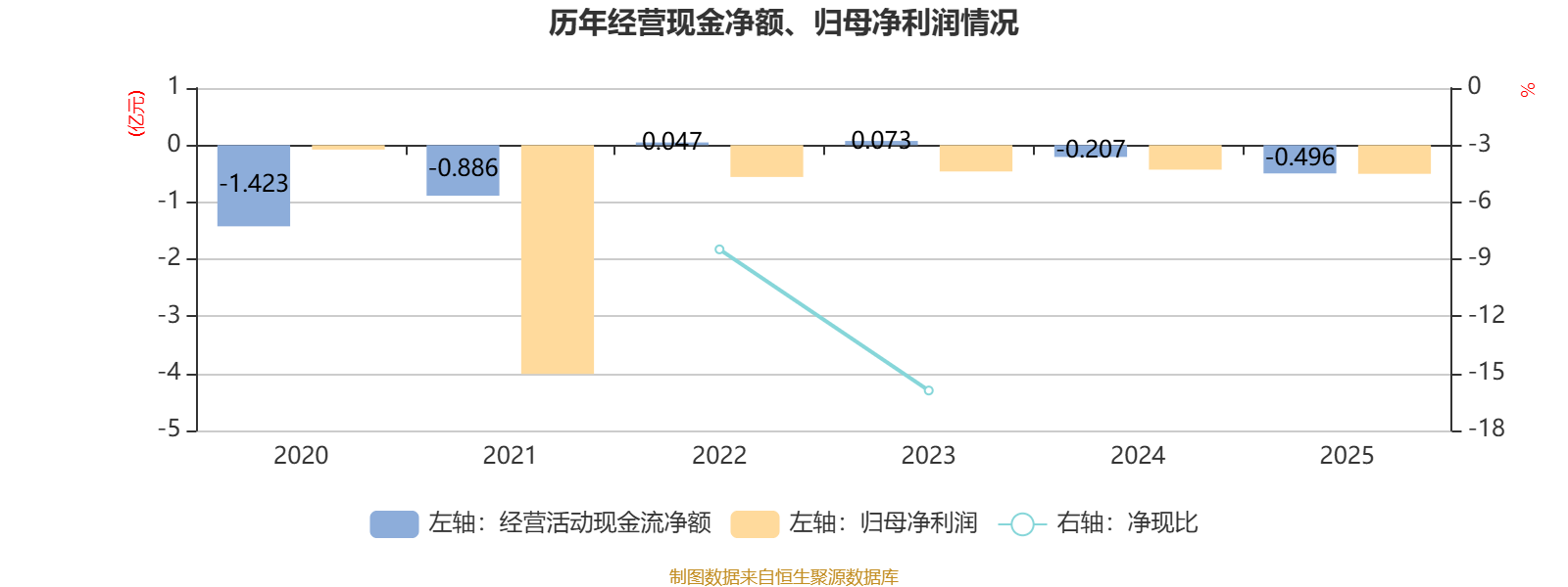 2025年,公司经营活动现金流净额为-4957.5万元,同比减少2883.8万元;筹资活动现金流净额1733.3万元,同比增加3422.7万元;投资活动现金流净额3124.9万元,上年同期为3665万元。