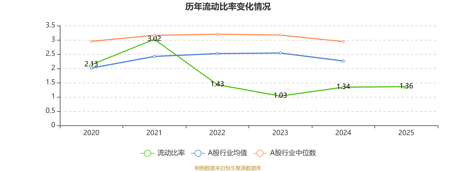 2025年,公司流动比率为1.36。