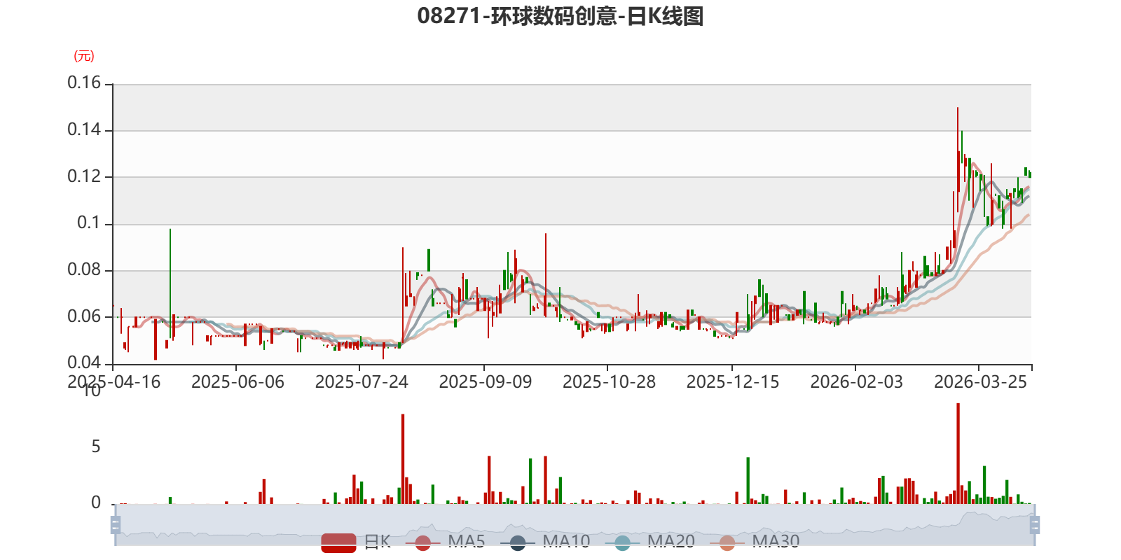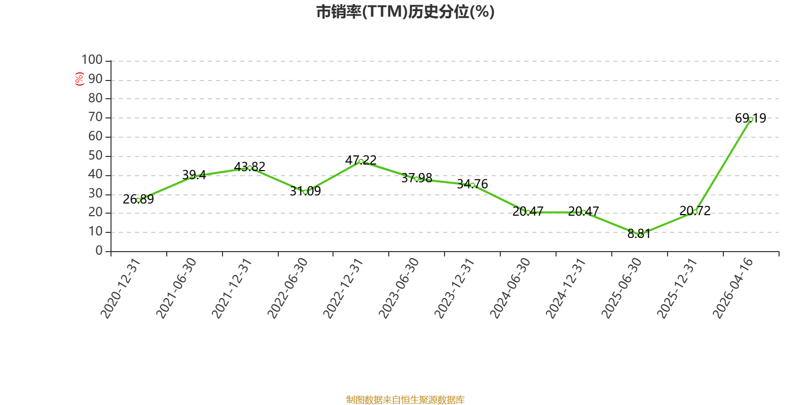 以4月16日收盘价计算,环球数码创意目前市盈率(TTM)约13.46倍,市净率(TTM)约0.47倍,市销率(TTM)约3.16倍。