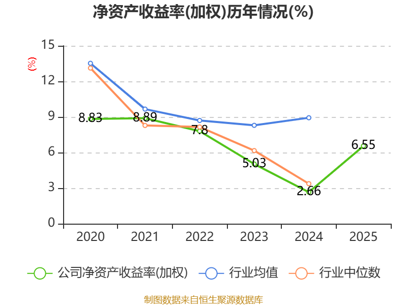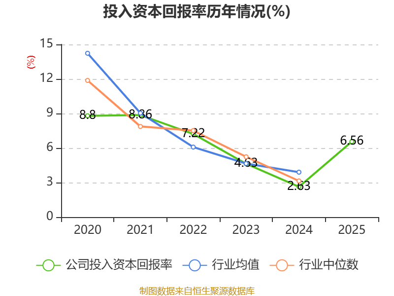 数据显示,2025年公司加权平均净资产收益率为6.55%,较上年同期上升3.89个百分点。公司2025年投入资本回报率为6.56%,较上年同期上升3.93个百分点。