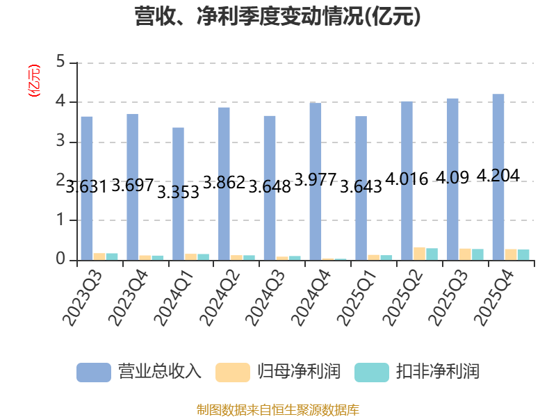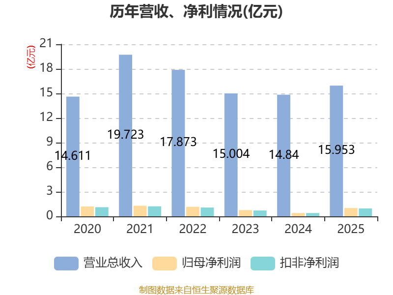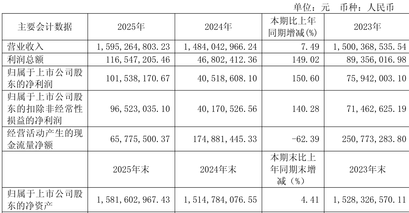 中证智能财讯兴业股份(603928)4月17日披露2025年年度报告。2025年,公司实现营业总收入15.95亿元,同比增长7.49%;归母净利润1.02亿元,同比增长150.60%;扣非净利润9652.3万元,同比增长140.28%;经营活动产生的现金流量净额为6577.55万元,同比下降62.39%;报告期内,兴业股份基本每股收益为0.39元,加权平均净资产收益率为6.55%。
