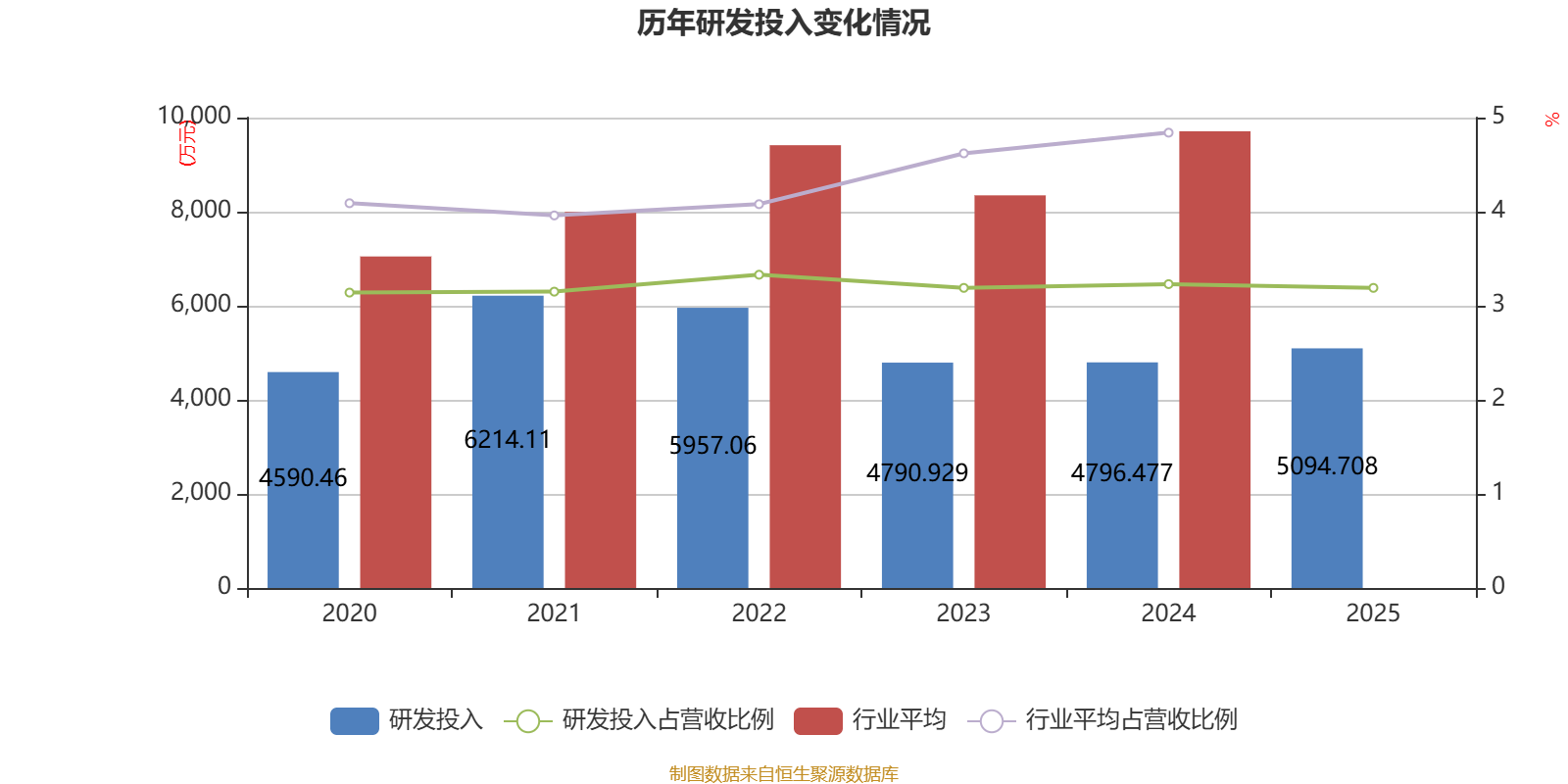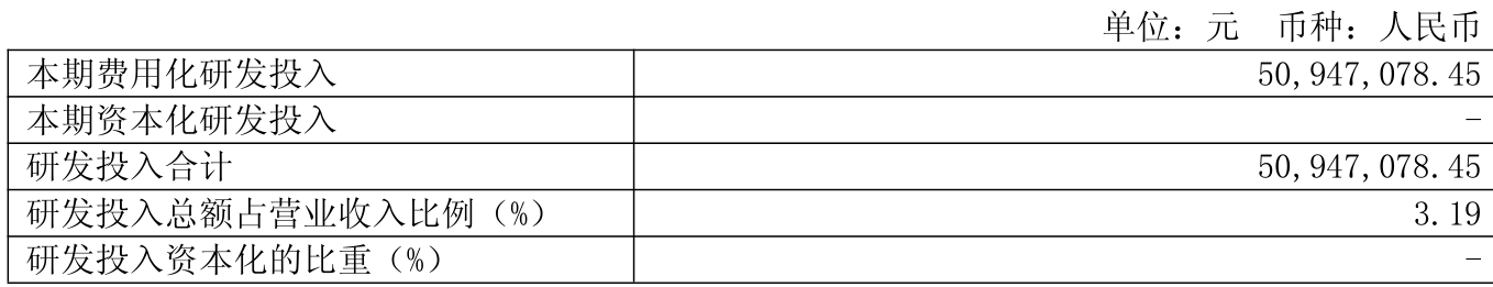 2025年全年,公司研发投入金额为5094.71万元,同比增长6.22%;研发投入占营业收入比例为3.19%,相比上年同期下降0.04个百分点。此外,公司全年研发投入资本化率为0。