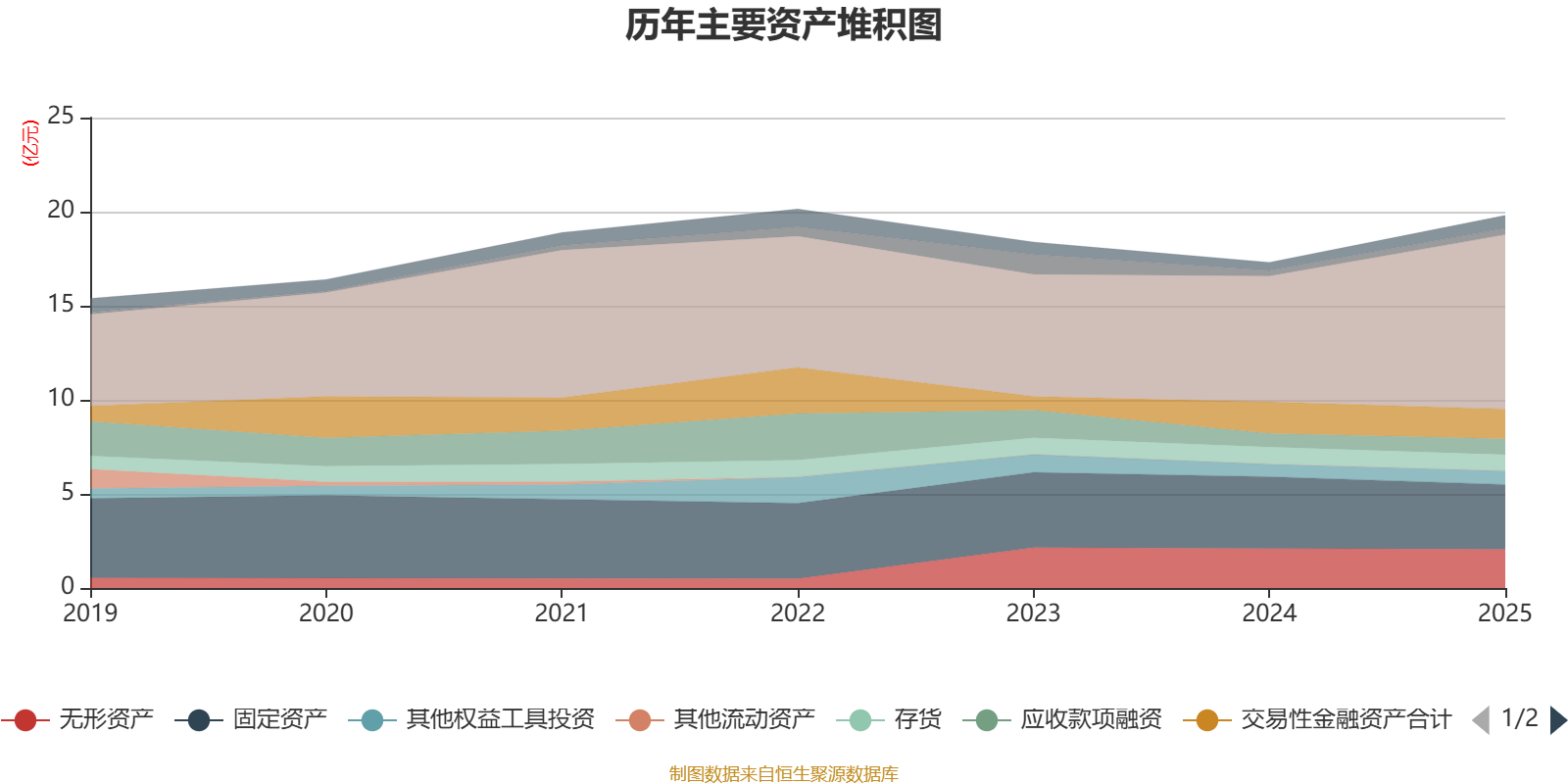 资产重大变化方面,截至2025年末,公司应收票据及应收账款较上年末增加38.8%,占公司总资产比重上升8.21个百分点;固定资产较上年末减少9.62%,占公司总资产比重下降4.63个百分点;无形资产较上年末减少2.19%,占公司总资产比重下降1.76个百分点;交易性金融资产合计较上年末减少6.06%,占公司总资产比重下降1.74个百分点。