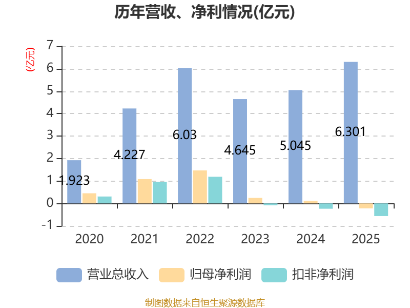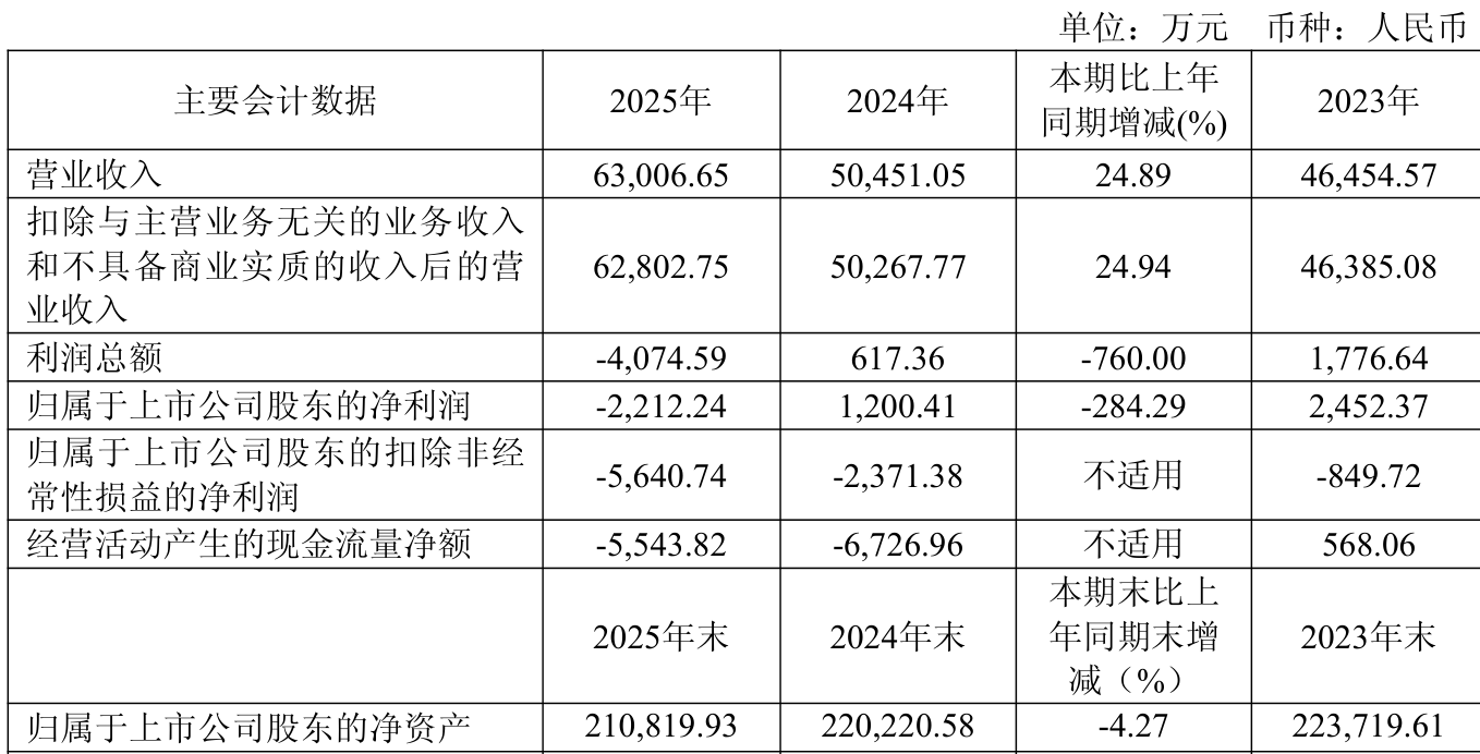 中证智能财讯壹石通(688733)4月17日披露2025年年度报告。2025年,公司实现营业总收入6.3亿元,同比增长24.89%;归母净利润亏损2212.24万元,上年同期盈利1200.41万元;扣非净利润亏损5640.74万元,上年同期亏损2371.38万元;经营活动产生的现金流量净额为-5543.82万元,上年同期为-6726.96万元;报告期内,壹石通基本每股收益为-0.11元,加权平均净资产收益率为-1.02%。公司2025年度分配预案为:拟向全体股东每10股派现1元(含税)。