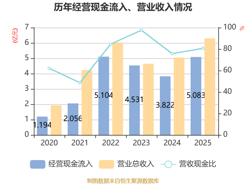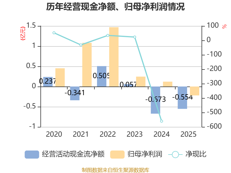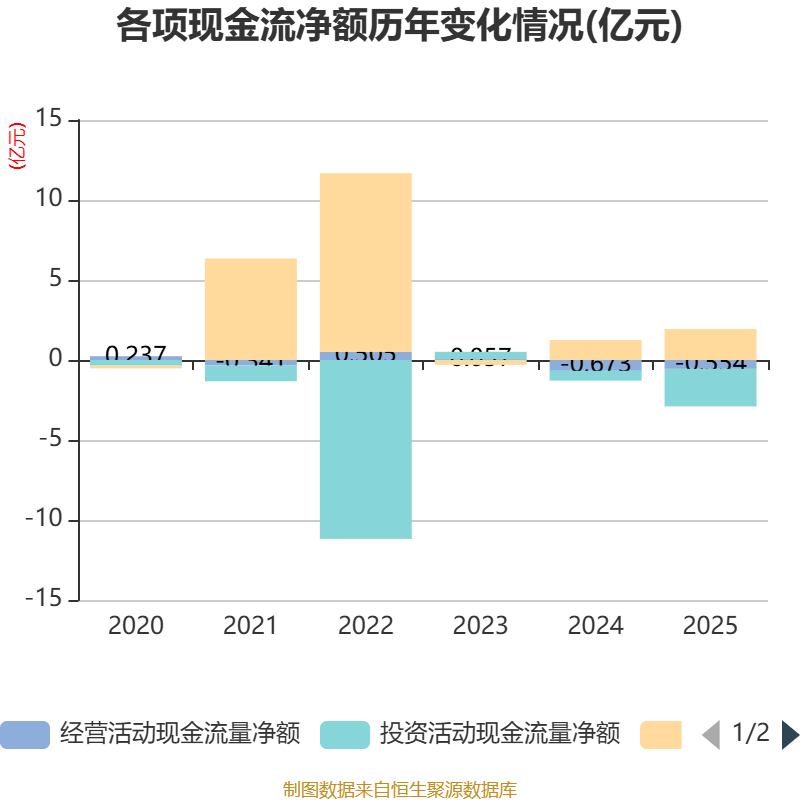 截至2025年,公司经营活动现金流净额为-5543.82万元,同比增加1183.14万元;筹资活动现金流净额1.94亿元,同比增加6916.36万元;投资活动现金流净额-2.35亿元,上年同期为-6150.04万元。
