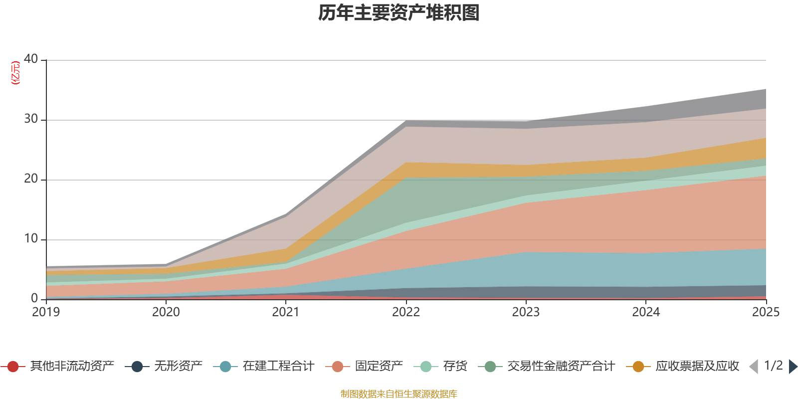 资产重大变化方面,截至2025年末,公司货币资金较上年末减少17.66%,占公司总资产比重下降4.5个百分点;应收票据及应收账款较上年末增加57.1%,占公司总资产比重上升2.99个百分点;固定资产较上年末增加16.05%,占公司总资产比重上升2.13个百分点;交易性金融资产合计较上年末减少27.04%,占公司总资产比重下降1.71个百分点。
