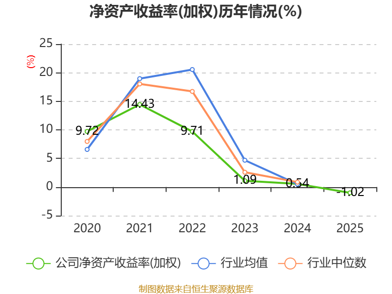 数据显示,2025年公司加权平均净资产收益率为-1.02%,较上年同期下降1.56个百分点。公司2025年投入资本回报率为-0.86%,较上年同期下降1.45个百分点。