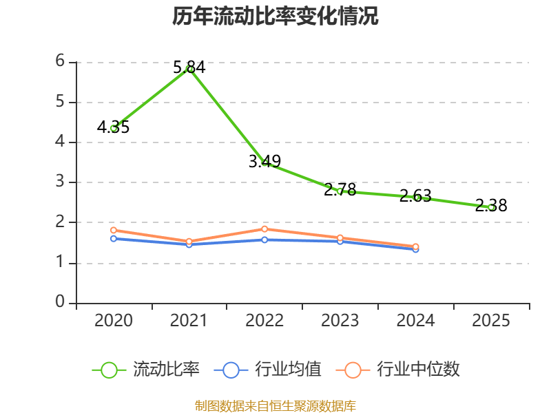 2025年,公司流动比率为2.38,速动比率为2.05。
