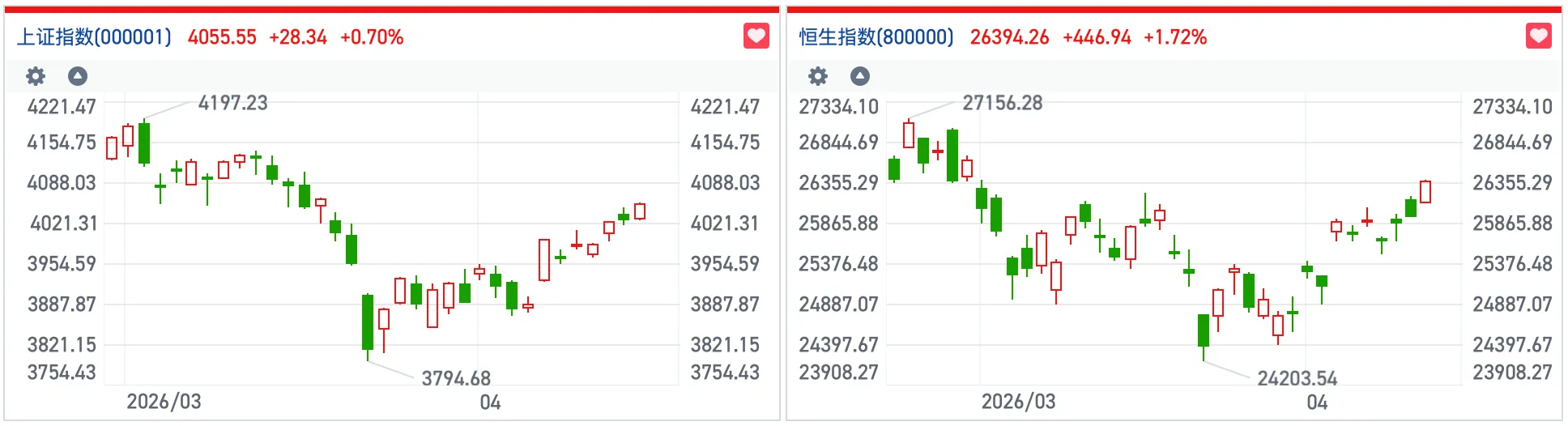 综合来看,中东局势缓和后,海外市场率先反转,对港股也有带动。今日,日经225指数更是收涨2.4%再创新高,并抹平伊朗战争以来的跌幅,隔夜美股标普500指数也已刷新年内高点。