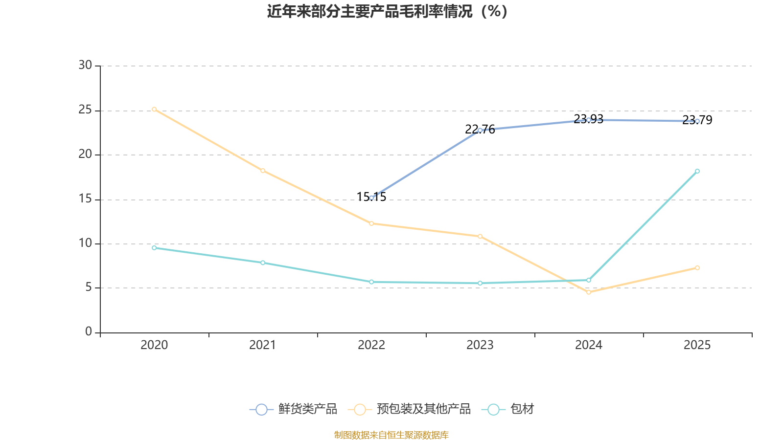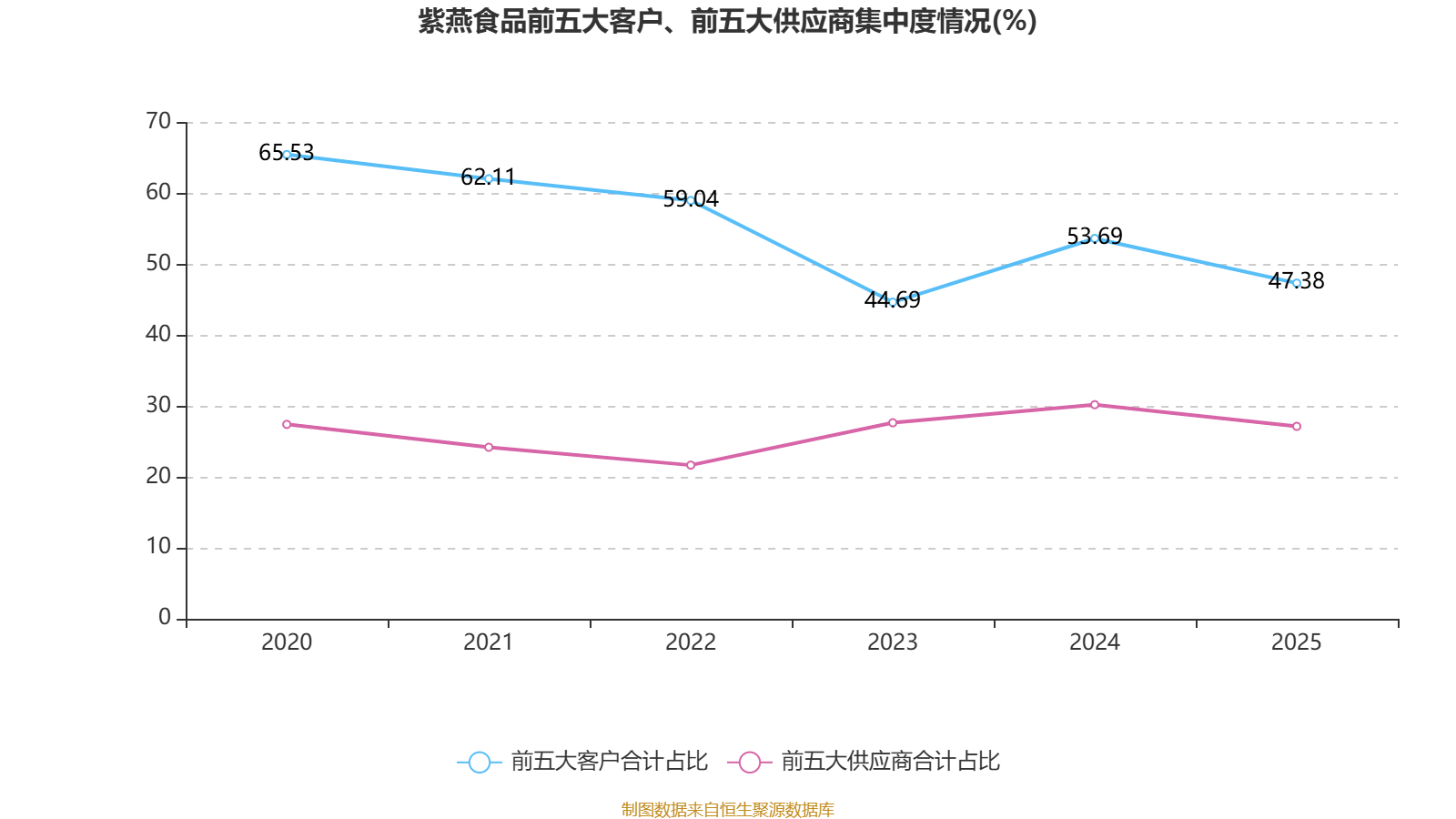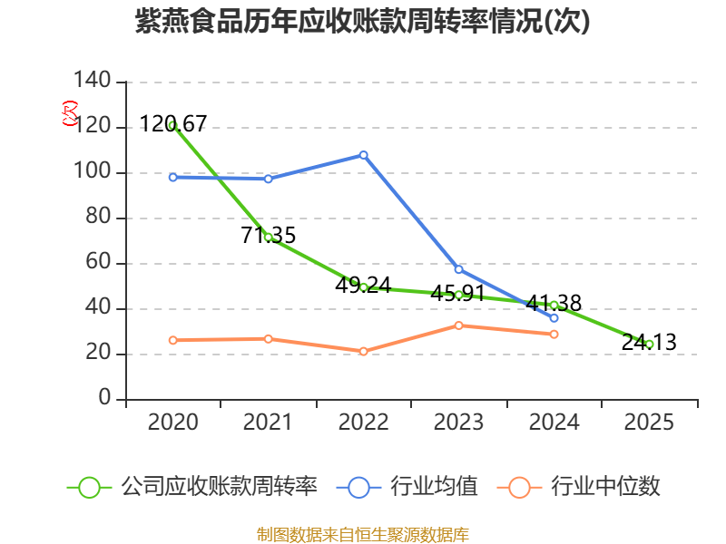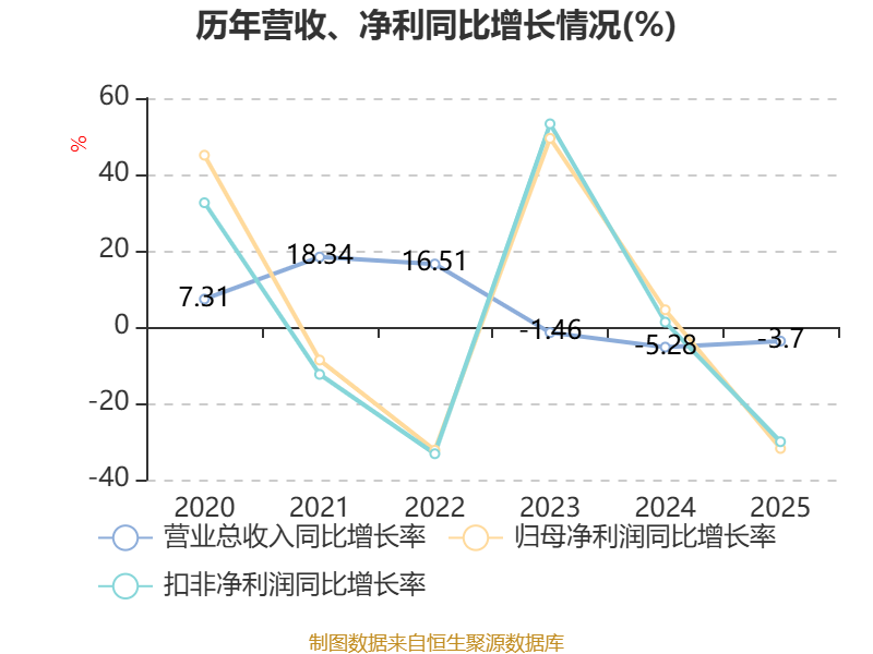 中证智能财讯紫燕食品(603057)4月17日披露2025年年度报告。2025年,公司实现营业总收入32.38亿元,同比下降3.70%;归母净利润2.36亿元,同比下降31.84%;扣非净利润1.97亿元,同比下降30.07%;经营活动产生的现金流量净额为2.48亿元,同比下降45.32%;报告期内,紫燕食品基本每股收益为0.5714元,加权平均净资产收益率为11.78%。公司2025年度分配预案为:拟向全体股东每10股派现1.8元(含税)。