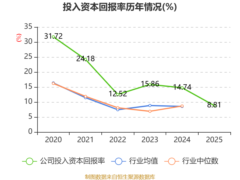 数据显示,2025年公司加权平均净资产收益率为11.78%,较上年同期下降5.27个百分点。公司2025年投入资本回报率为8.81%,较上年同期下降5.93个百分点。