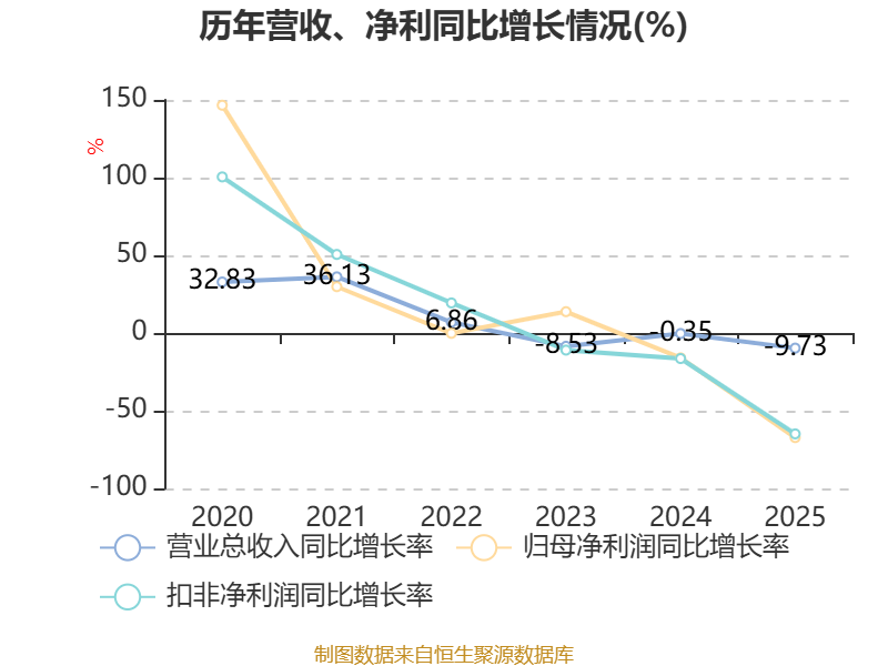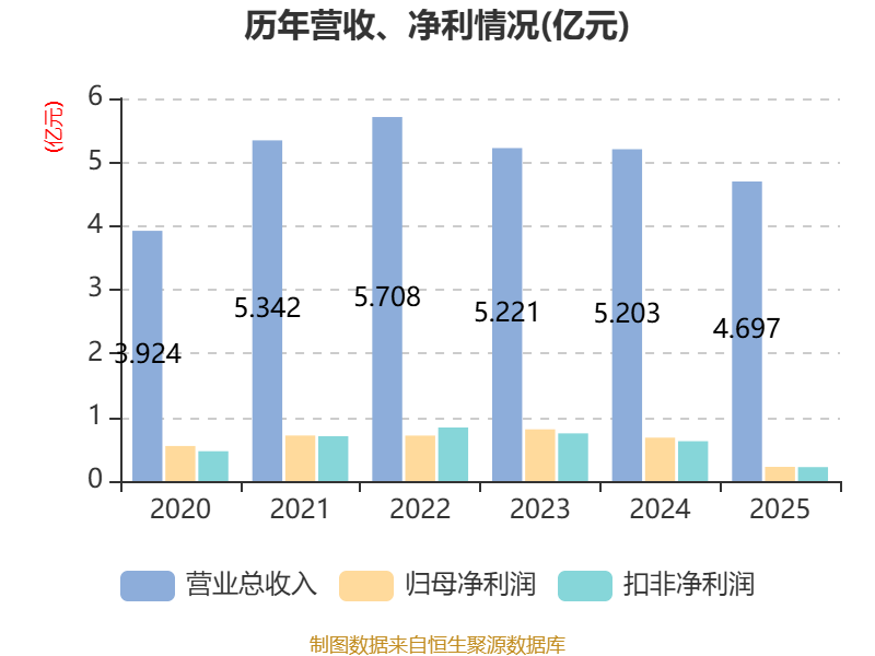 中证智能财讯汇成真空(301392)4月17日披露2025年年度报告。2025年,公司实现营业总收入4.7亿元,同比下降9.73%;归母净利润2225.32万元,同比下降67.32%;扣非净利润2191.88万元,同比下降64.92%;经营活动产生的现金流量净额为2.27亿元,上年同期为-3639.41万元;报告期内,汇成真空基本每股收益为0.22元,加权平均净资产收益率为2.99%。公司2025年度分配预案为:拟向全体股东每10股派现1元(含税)。