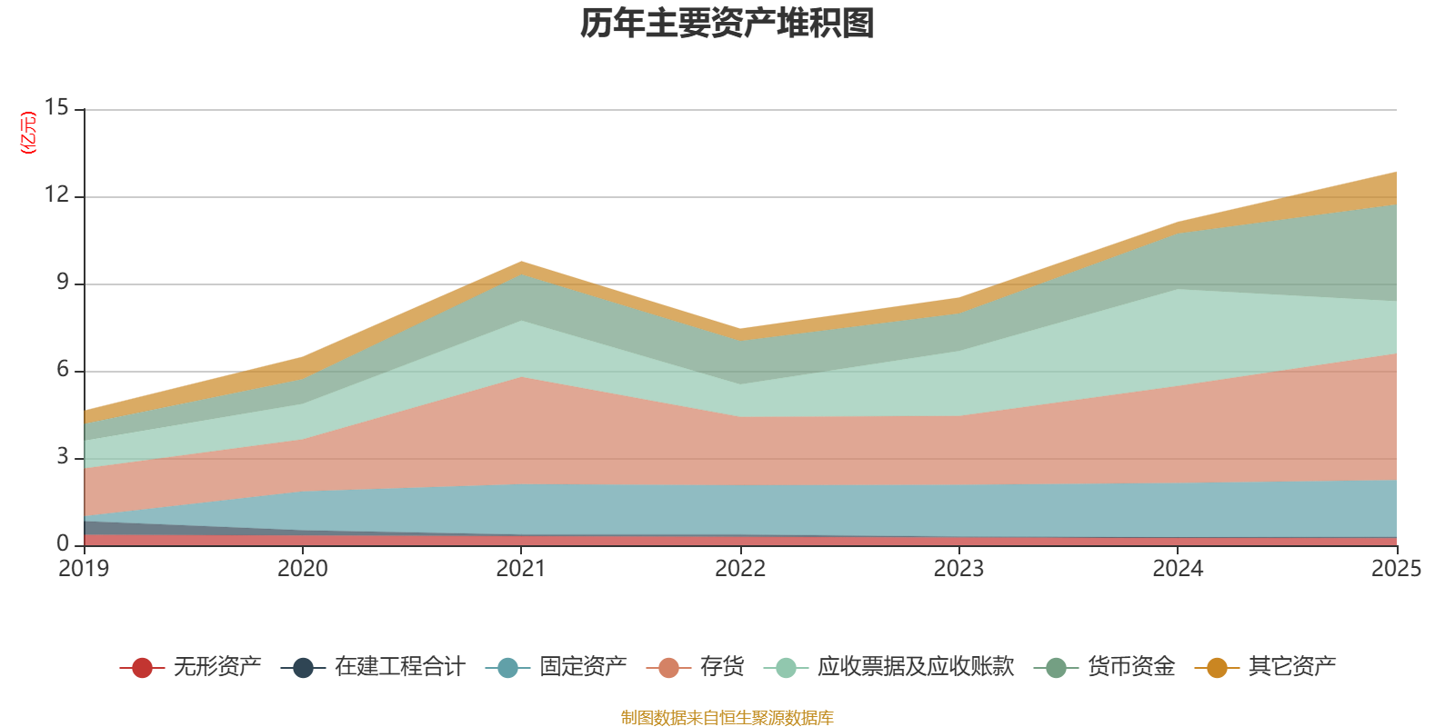 资产重大变化方面,截至2025年末,公司应收票据及应收账款较上年末减少45.96%,占公司总资产比重下降15.91个百分点;货币资金较上年末增加73.29%,占公司总资产比重上升8.63个百分点;存货较上年末增加30.49%,占公司总资产比重上升3.89个百分点;固定资产较上年末增加4.39%,占公司总资产比重下降1.62个百分点。
