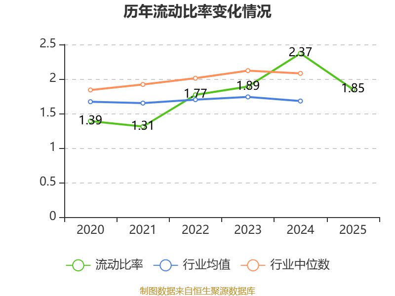 2025年,公司流动比率为1.85,速动比率为1.07。