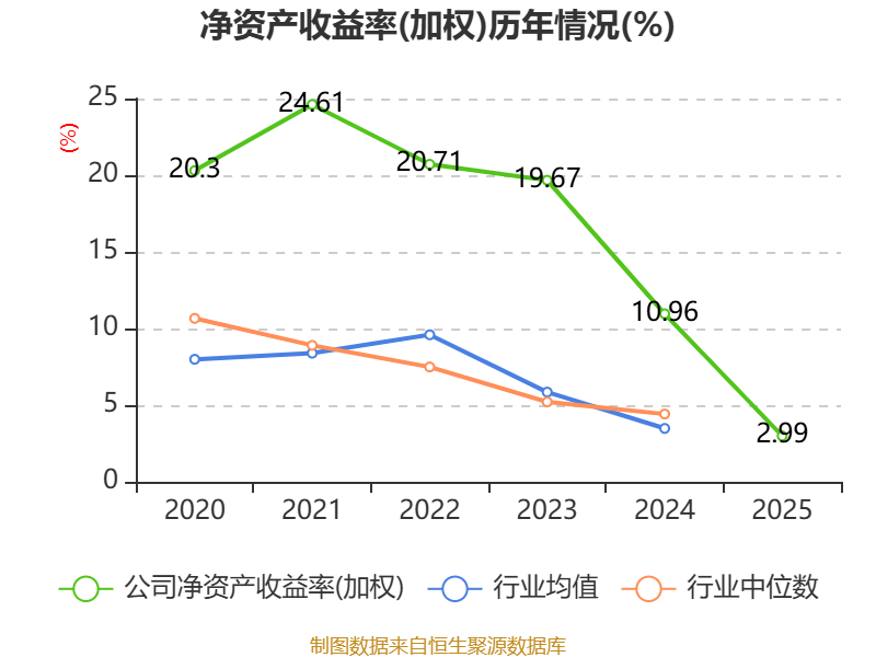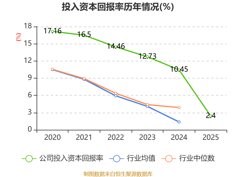 数据显示,2025年公司加权平均净资产收益率为2.99%,较上年同期下降7.97个百分点。公司2025年投入资本回报率为2.4%,较上年同期下降8.05个百分点。