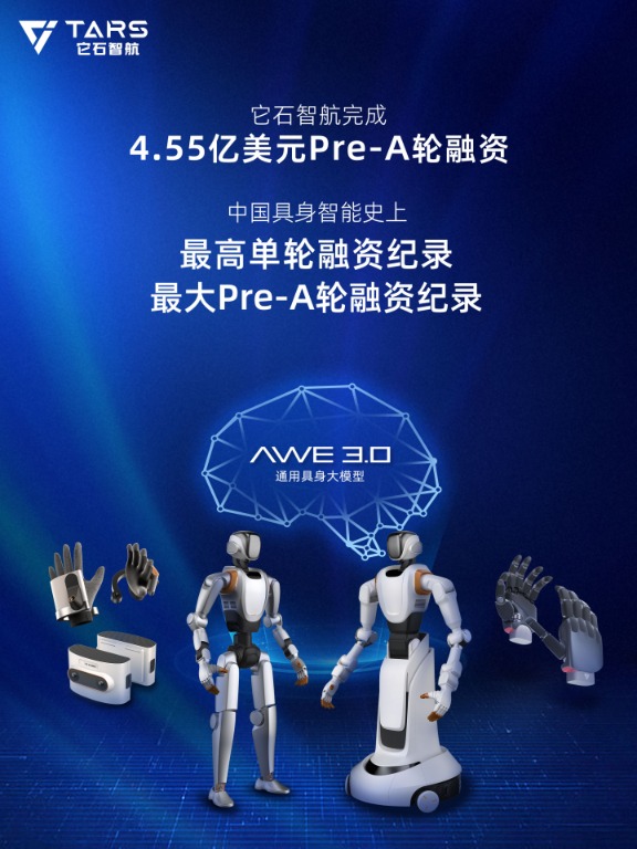 这是它石智航第二次刷新行业融资纪录。2025年年初,它石智航拿下中国具身智能最高天使轮融资——2.42亿美元。