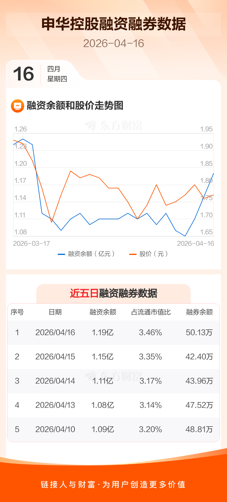 交易所最新数据显示,申华控股于2026年4月16日获融资买入607.74万元,融资偿还171.41万元,当日融资净买入436.33万元。目前,该股融资余额1.19亿,占流通市值比例为3.46%。