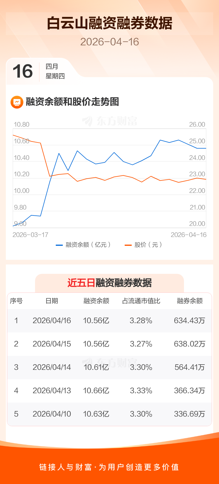 交易所最新数据显示,白云山于2026年4月16日获融资买入2475.45万元,融资偿还2496.65万元,当日融资净偿还21.2万元。目前,该股融资余额10.56亿,占流通市值比例为3.28%。