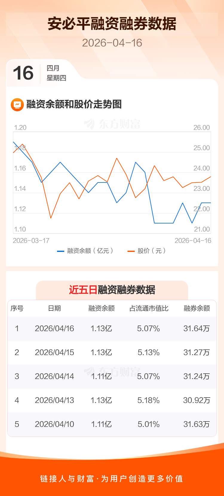 交易所最新数据显示,安必平于2026年4月16日获融资买入182.31万元,融资偿还183.58万元,当日融资净偿还1.26万元。目前,该股融资余额1.13亿,占流通市值比例为5.07%。