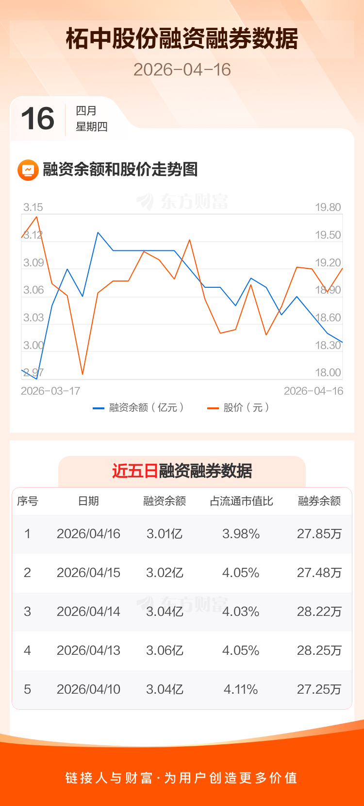 交易所最新数据显示,柘中股份于2026年4月16日获融资买入370.06万元,融资偿还451.04万元,当日融资净偿还80.98万元。目前,该股融资余额3.01亿,占流通市值比例为3.98%。