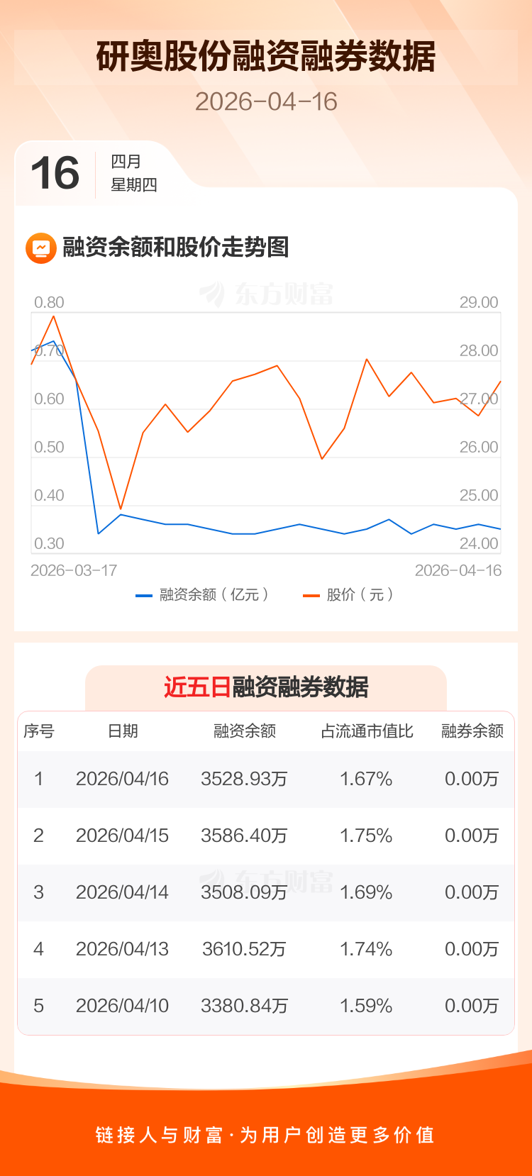 交易所最新数据显示,研奥股份于2026年4月16日获融资买入404.42万元,融资偿还461.89万元,当日融资净偿还57.46万元。目前,该股融资余额3528.93万,占流通市值比例为1.67%。