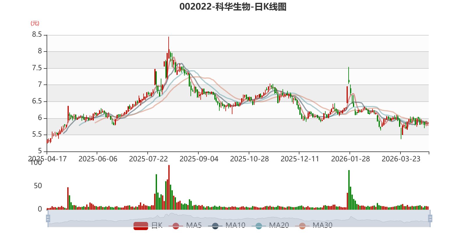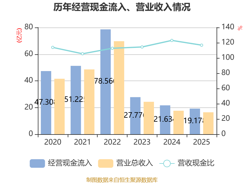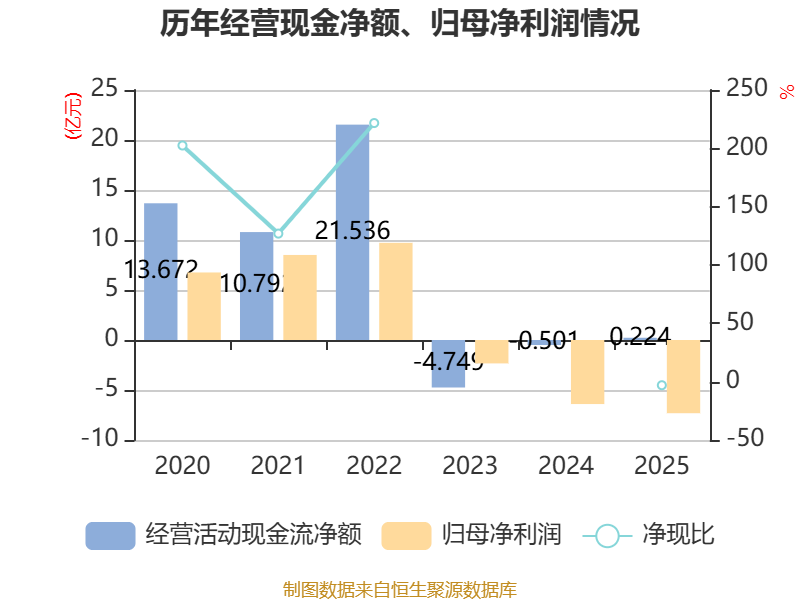 中证智能财讯科华生物(002022)4月17日披露2025年年度报告。2025年,公司实现营业总收入16.42亿元,同比下降6.63%;归母净利润亏损7.32亿元,上年同期亏损6.41亿元;扣非净利润亏损7.45亿元,上年同期亏损6.69亿元;经营活动产生的现金流量净额为2243.87万元,上年同期为-5011.6万元;报告期内,科华生物基本每股收益为-1.4235元,加权平均净资产收益率为-24.46%。