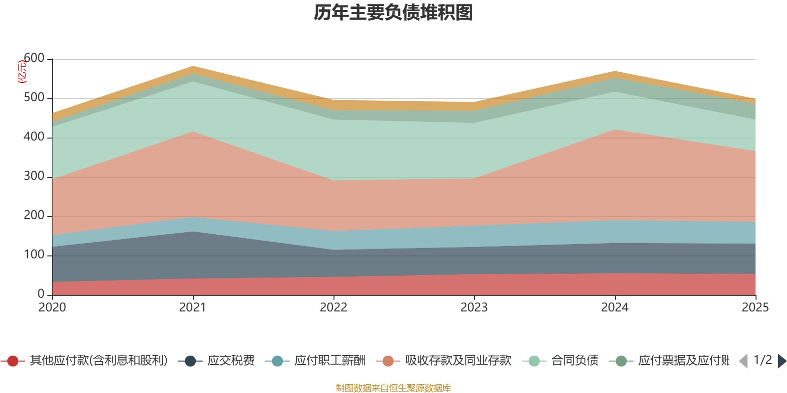 负债重大变化方面,截至2025年末,公司吸收存款及同业存款较上年末减少21.92%,占公司总资产比重下降1.79个百分点;合同负债较上年末减少16.53%,占公司总资产比重下降0.57个百分点;应付票据及应付账款较上年末增加14.01%,占公司总资产比重上升0.14个百分点;应付职工薪酬较上年末减少5.17%,占公司总资产比重下降0.13个百分点。