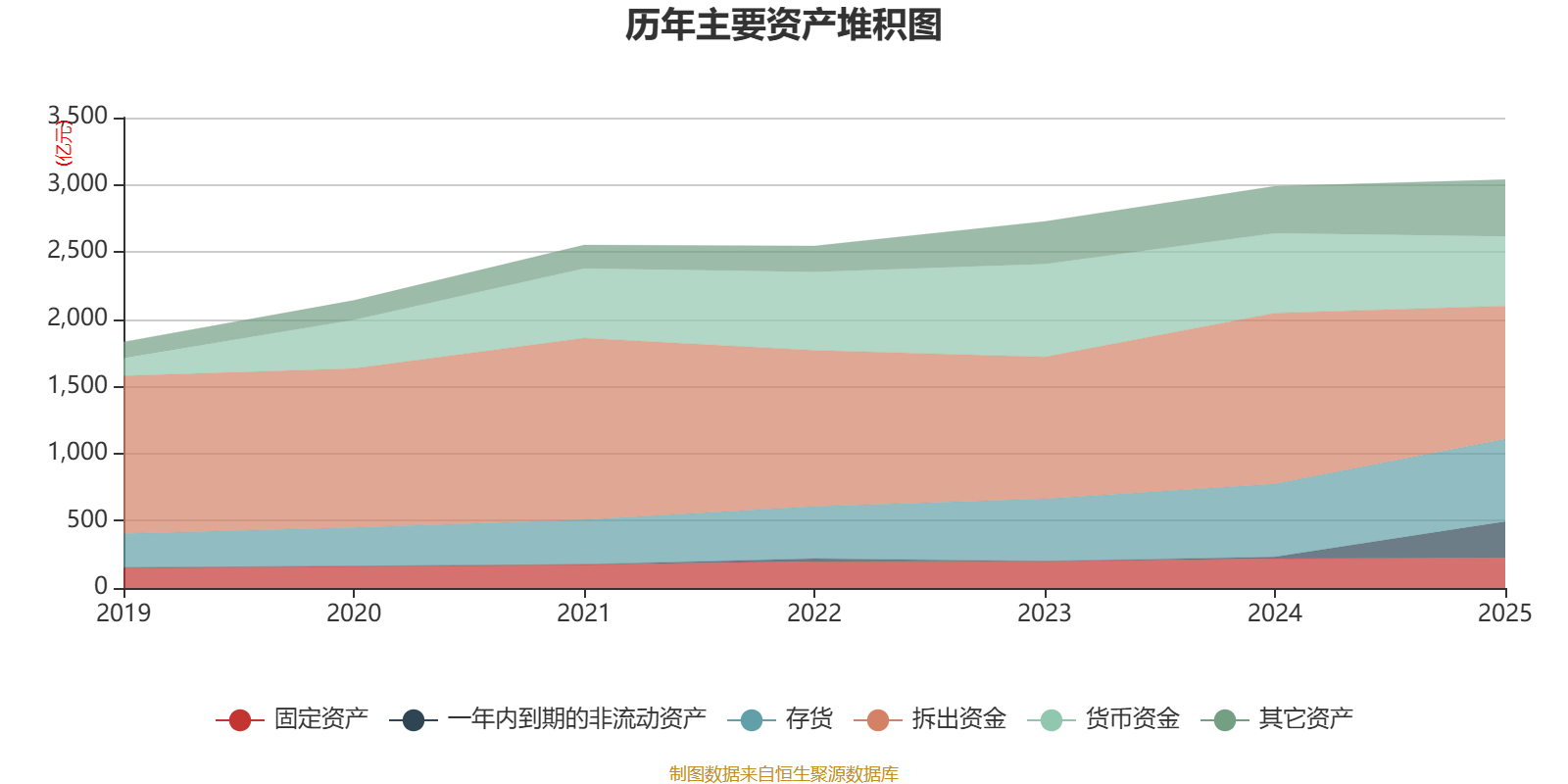 资产重大变化方面,截至2025年末,公司拆出资金较上年末减少22.09%,占公司总资产比重下降9.93个百分点;一年内到期的非流动资产较上年末增加2118.99%,占公司总资产比重上升8.44个百分点;货币资金较上年末减少12.83%,占公司总资产比重下降2.82个百分点;存货较上年末增加13.04%,占公司总资产比重上升2.04个百分点。