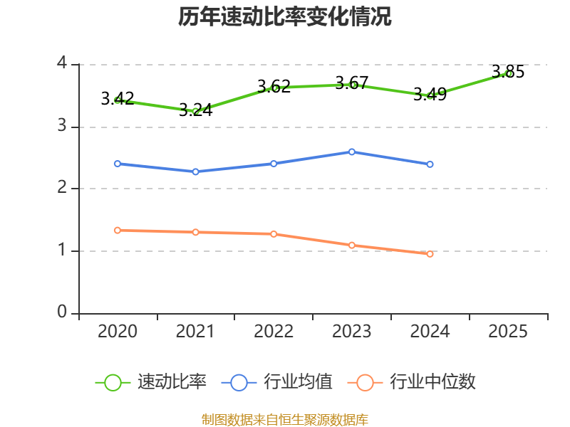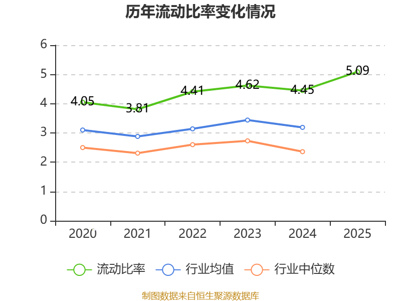 2025年,公司流动比率为5.09,速动比率为3.85。