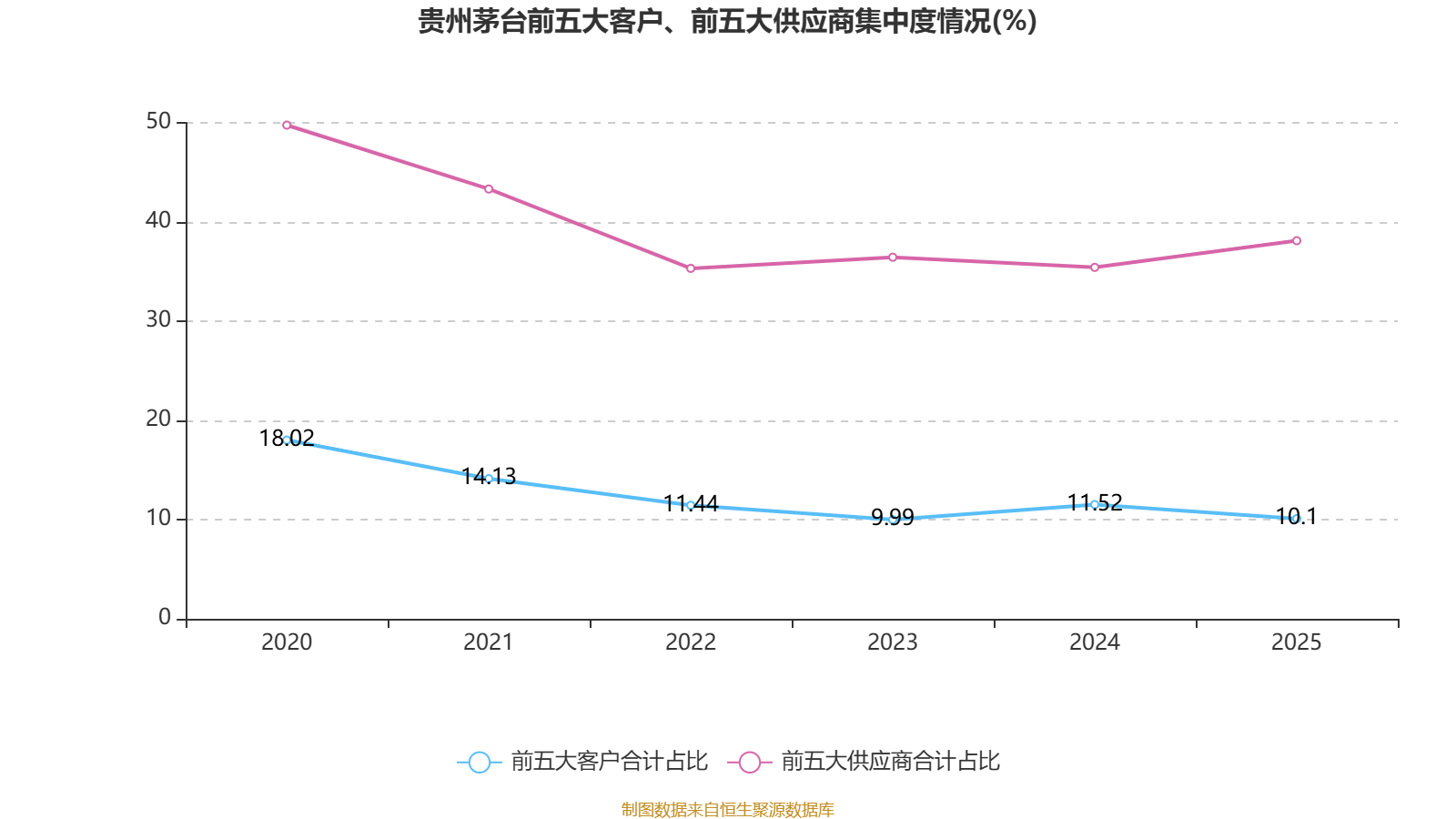 年报显示,2025年末的公司十大流通股东中,持股最多的为中国贵州茅台酒厂(集团)有限责任公司,占比54.404%。在具体持股比例上,中国贵州茅台酒厂(集团)有限责任公司持股有所上升,香港中央结算有限公司、上证50交易型开放式指数证券投资基金、华泰柏瑞沪深300交易型开放式指数证券投资基金、易方达沪深300交易型开放式指数发起式证券投资基金、华夏沪深300交易型开放式指数证券投资基金持股有所下降。