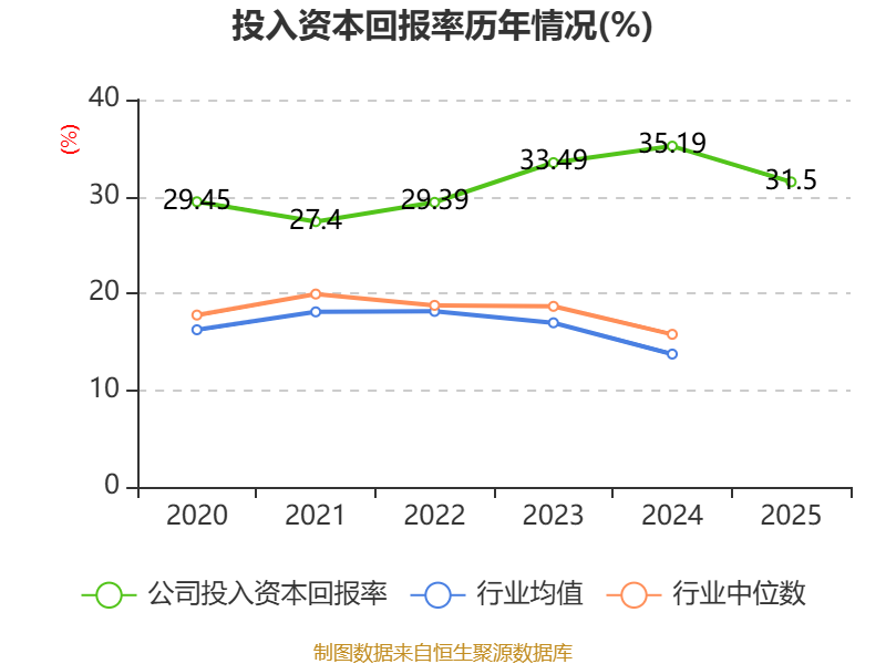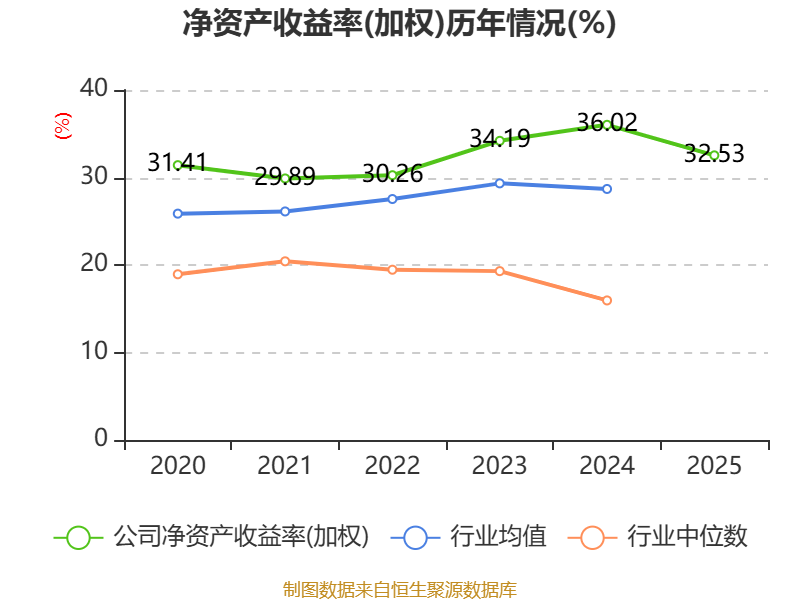 数据显示,2025年公司加权平均净资产收益率为32.53%,较上年同期下降3.49个百分点。公司2025年投入资本回报率为31.5%,较上年同期下降3.69个百分点。