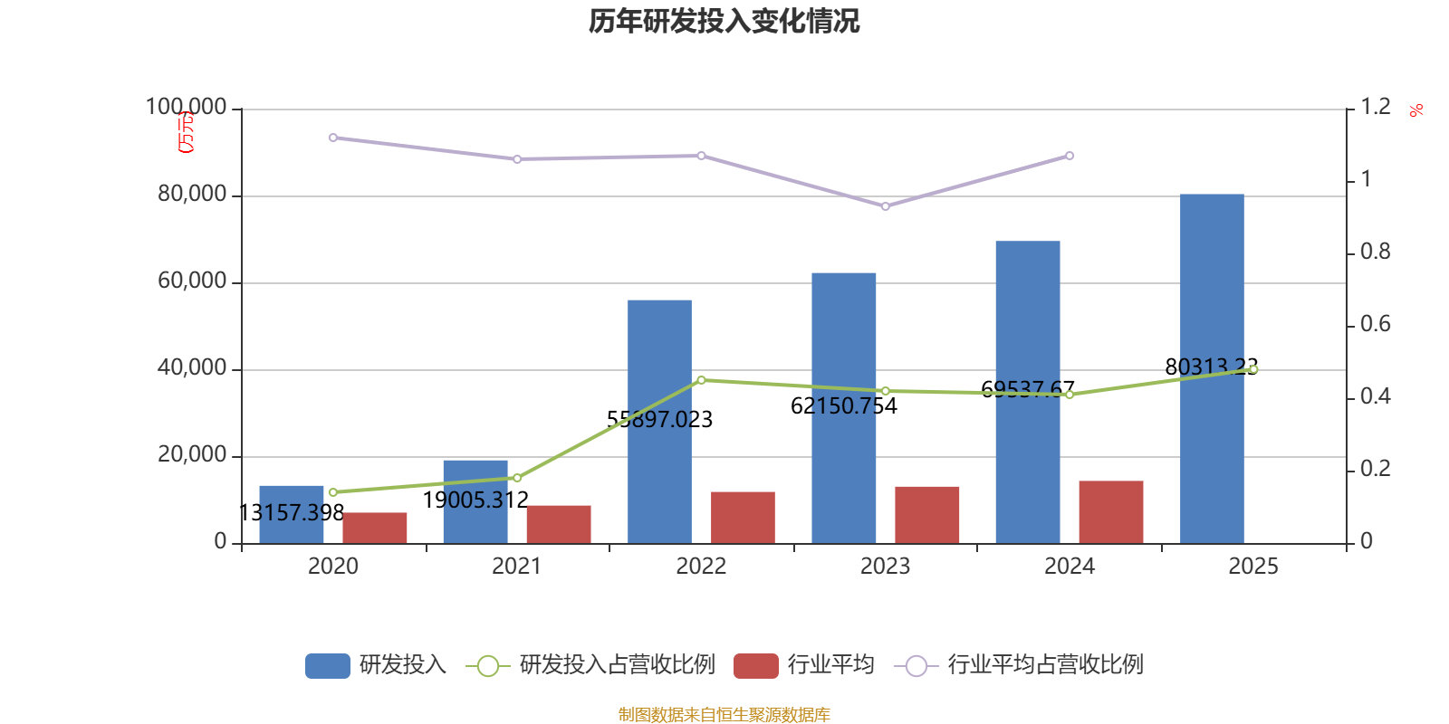 2025年全年,公司研发投入金额为8.03亿元,同比增长15.5%;研发投入占营业收入比例为0.48%,相比上年同期上升0.07个百分点。此外,公司全年研发投入资本化率为16%。
