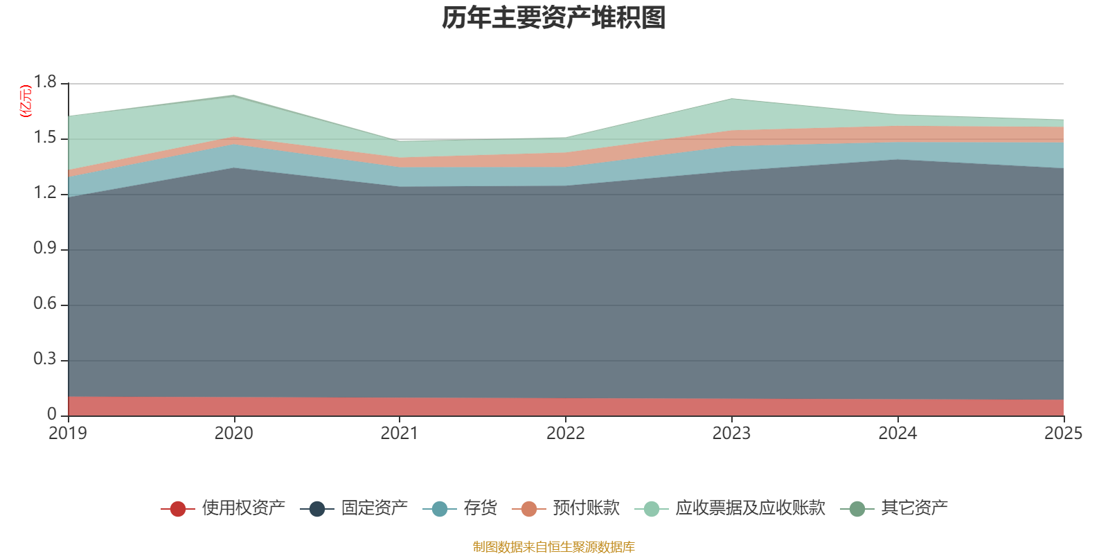 资产重大变化方面,截至2025年末,公司存货较上期末增加49.56%,占公司总资产比重上升2.97个百分点;应收票据及应收账款较上期末减少40.89%,占公司总资产比重下降1.44个百分点;固定资产较上期末减少3.43%,占公司总资产比重下降1.44个百分点;使用权资产较上期末减少3.34%,占公司总资产比重下降0.09个百分点。