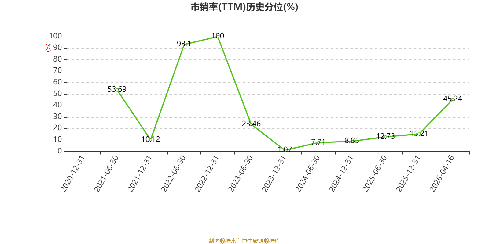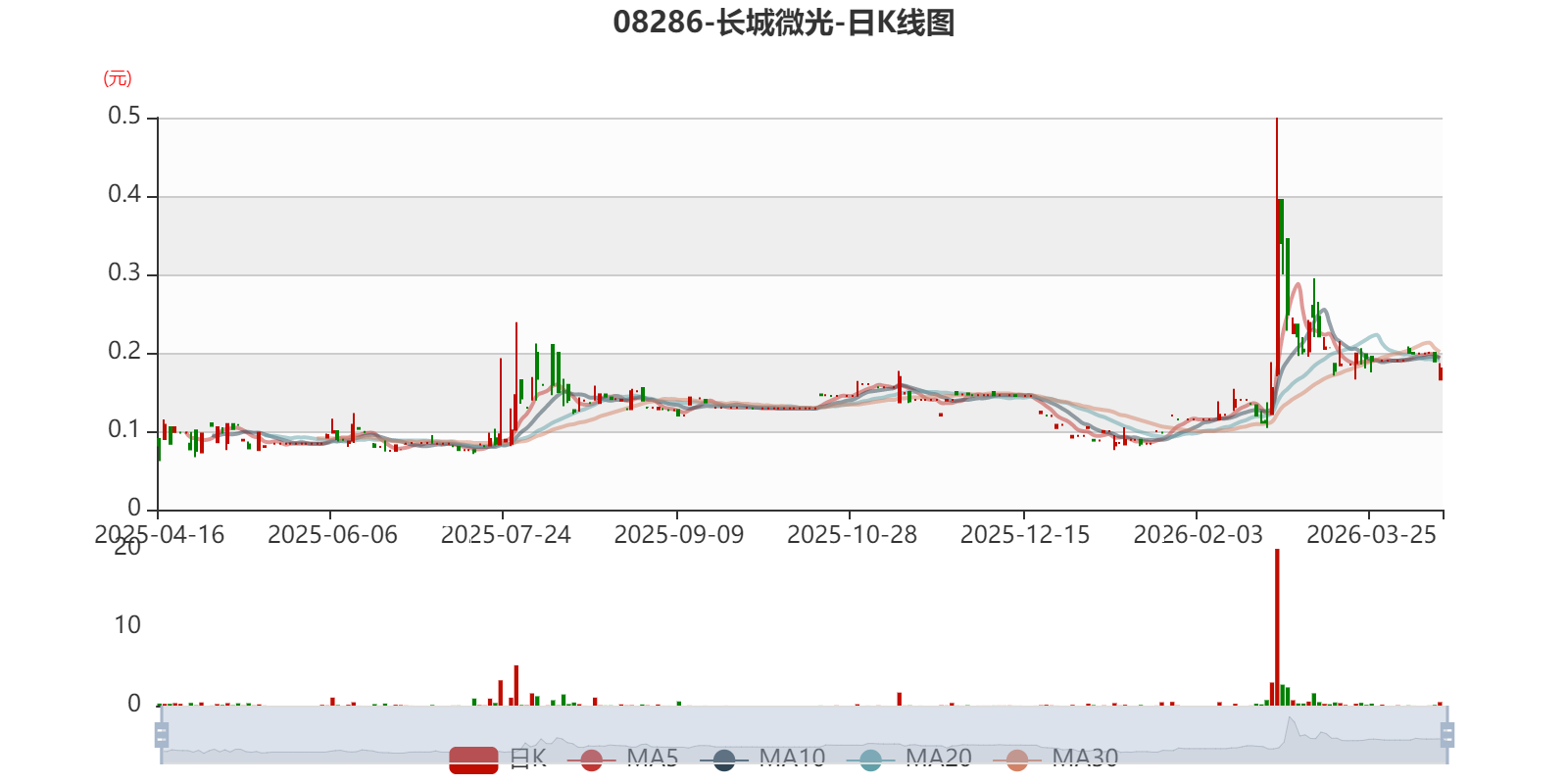 以4月16日收盘价计算,长城微光目前市净率(TTM)约-0.3倍,市销率(TTM)约2.72倍。