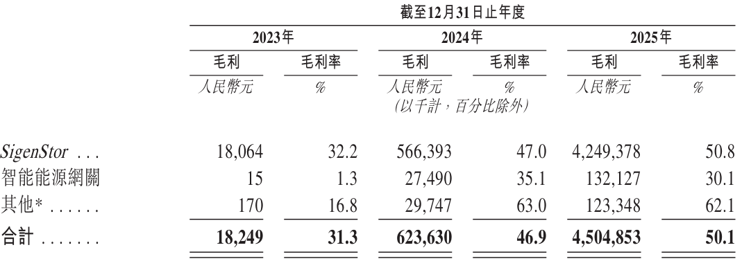 然而,剥开高增长的外壳,思格新能的业务结构显得异常陡峭。核心产品SigenStor在2025年贡献了92.9%的收入,这种单点支撑的格局,使其不得不通过高额的销售返利来深度绑定分销商。尽管受益于电芯等原材料成本的剧烈跌幅,思格的账面毛利率在2025年冲上了50.8%的高位,但其平均售价(ASP)持续下行,从3.17元/瓦时降至2.69元/瓦时,再降至2.54元/瓦时,已隐现出“以价格腾挪空间”的被动。