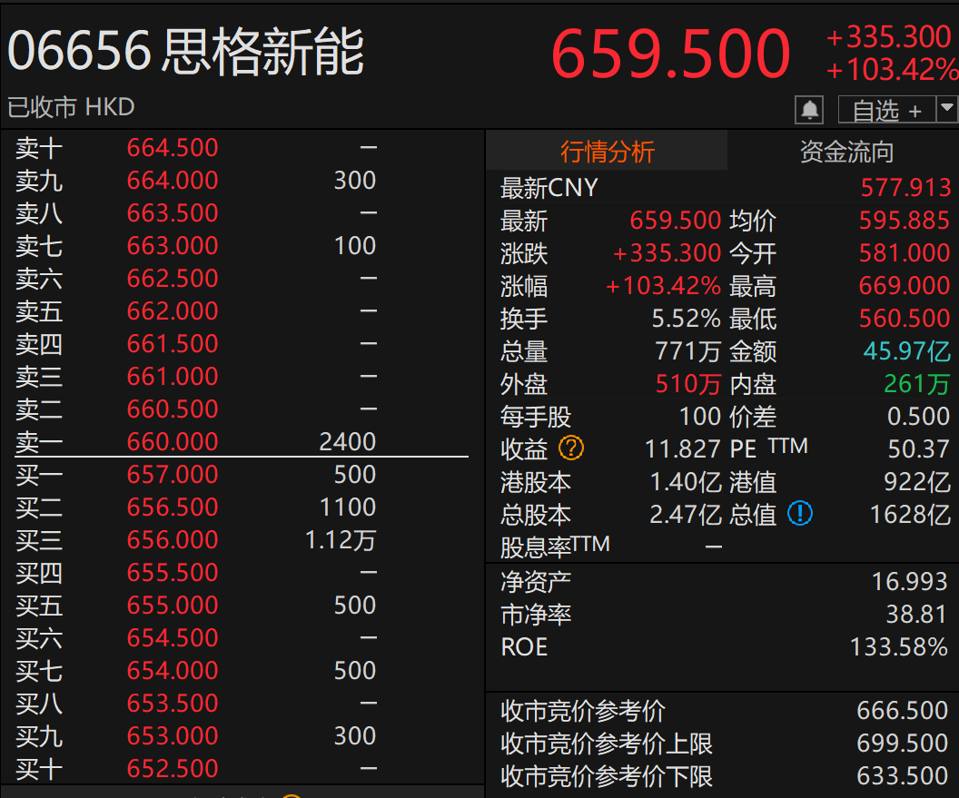 4月16日,思格新能正式挂牌,以不到4年的跨度刷新中企赴港上市最快纪录。按2.47亿股的总股本及最新汇率折算,盘中最高市值冲破1500亿元人民币关口。截至收盘报659.5港元,其总市值稳定在1400亿元人民币以上。