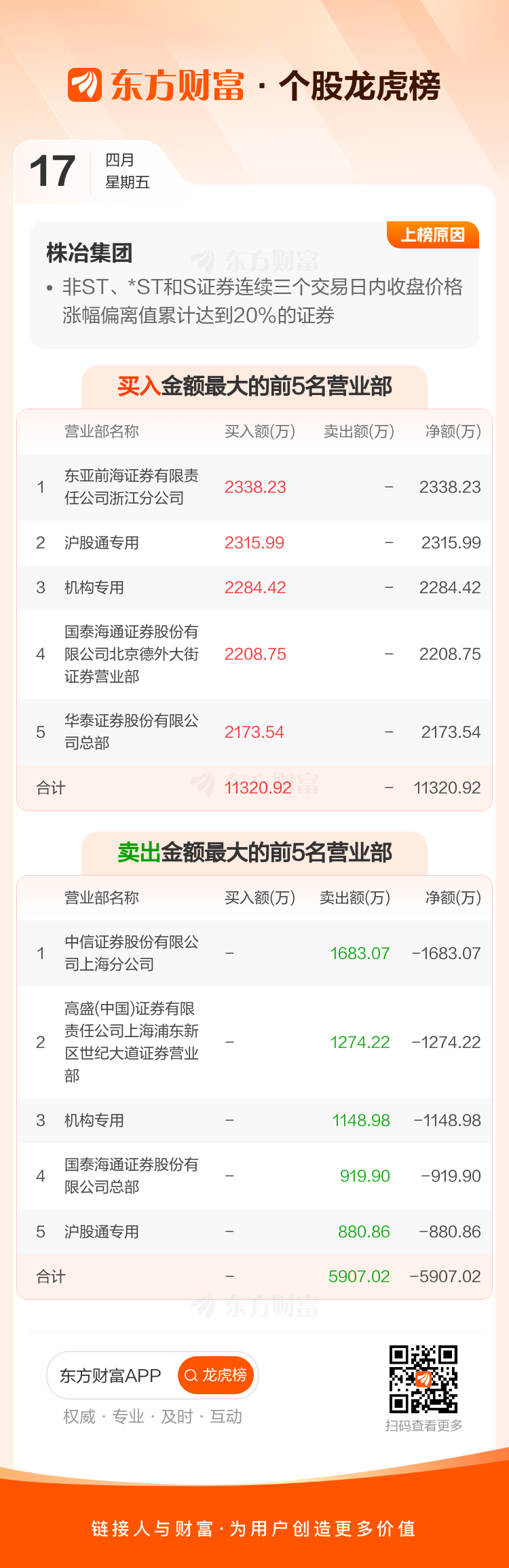 交易所2026年4月17日公布的交易公开信息显示,株冶集团因成为非ST、*ST和S证券连续三个交易日内收盘价格涨幅偏离值累计达到20%的证券上榜。株冶集团当日收报22.09元,涨跌幅10.01%,换手率0.62%,成交额1.03亿。异常期间4月16日至4月17日,期间涨幅21.04%,累计偏离值20.44%,区间成交额6.31亿。