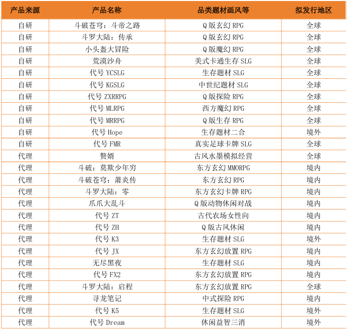 据财报信息,目前三七互娱储备有多款产品准备上线,包括11款自研游戏,15款代理游戏。