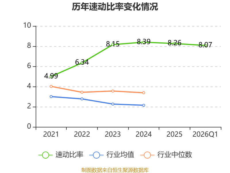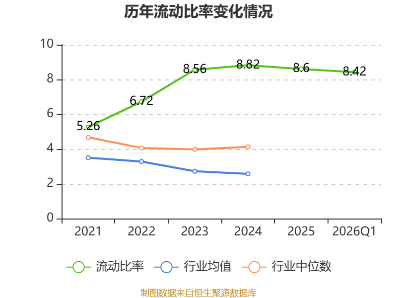 2026年第一季度,公司流动比率为8.42,速动比率为8.07。