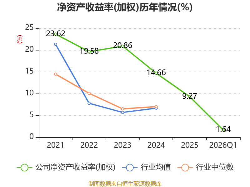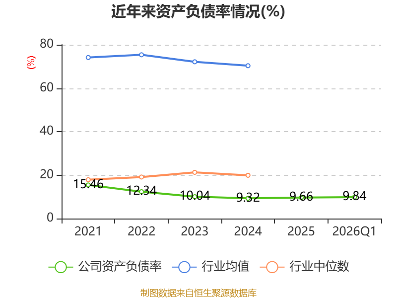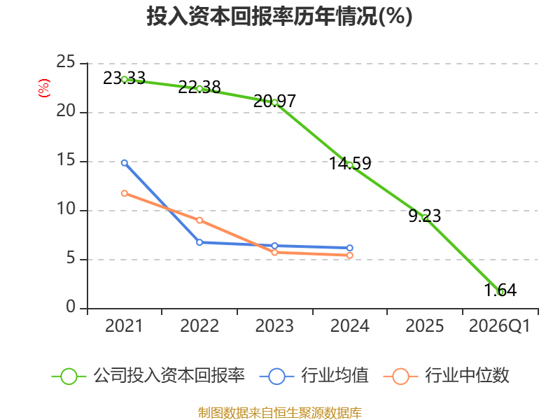 盈利能力方面, 2026年一季度公司加权平均净资产收益率为1.64%,同比下降1.31个百分点。公司2026年第一季度投入资本回报率为1.64%,较上年同期下降1.3个百分点。