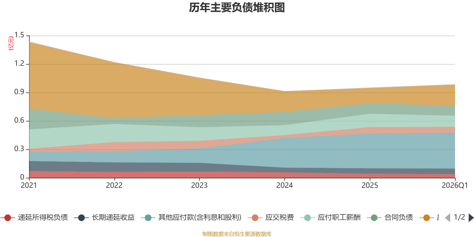 负债重大变化方面,截至2026年一季度末,公司应付票据及应付账款较上年末增加40.44%,占公司总资产比重上升0.61个百分点;应付职工薪酬较上年末减少16.87%,占公司总资产比重下降0.26个百分点;合同负债较上年末减少7.33%,占公司总资产比重下降0.1个百分点;应交税费较上年末减少8.09%,占公司总资产比重下降0.07个百分点。