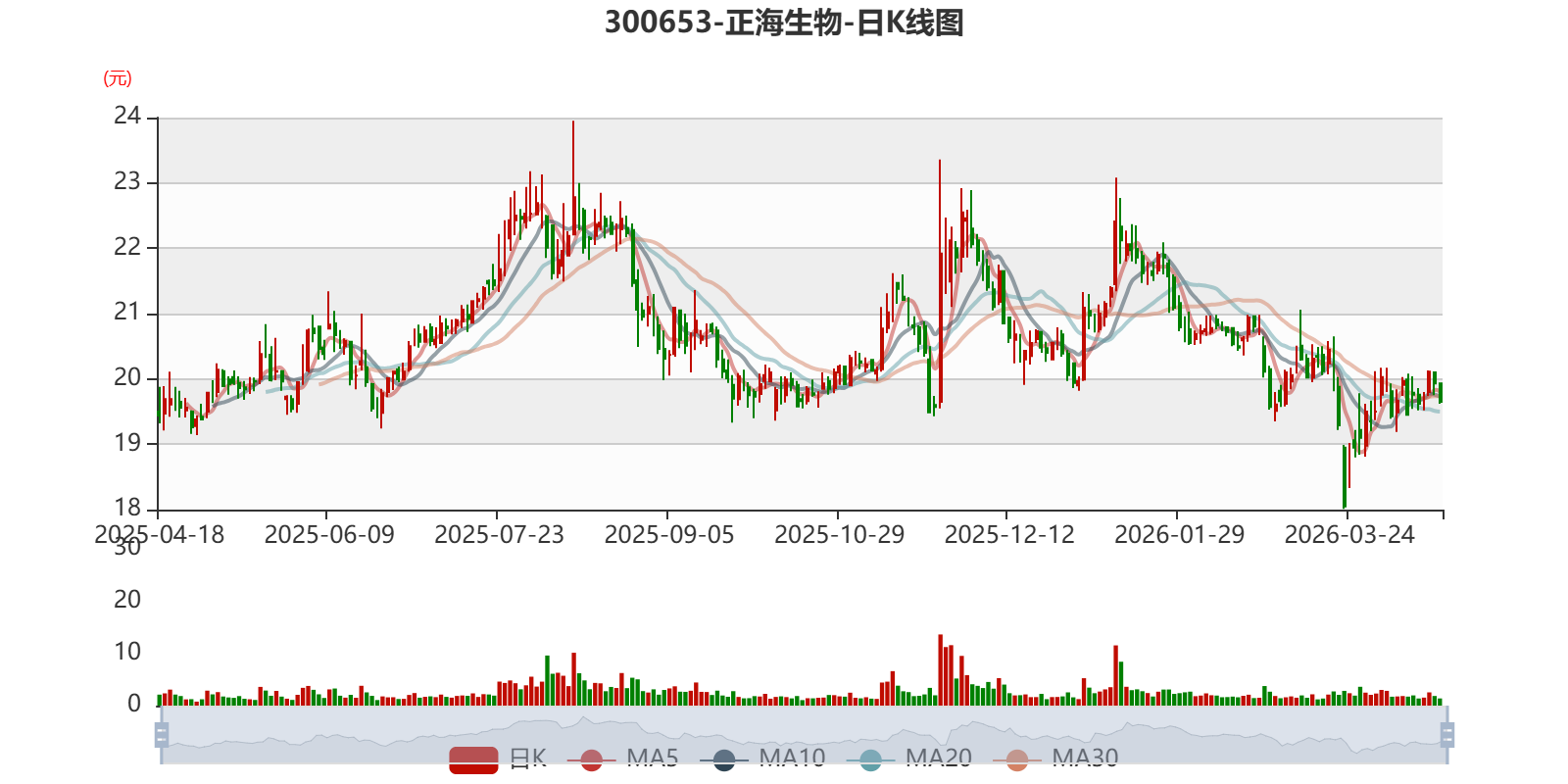 中证智能财讯正海生物(300653)4月18日披露2026年第一季度报告。公司实现营业总收入8102.87万元,同比下降16.82%;归母净利润1474.93万元,同比下降44.61%;扣非净利润1200.81万元,同比下降49.62%;经营活动产生的现金流量净额为1277.82万元,同比下降67.19%;报告期内,正海生物基本每股收益为0.08元,加权平均净资产收益率为1.64%。