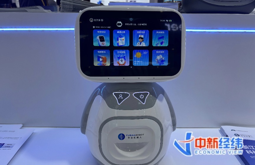 孚宝智能展台前,不少参观者正在围观体验智能康养陪伴机器人。“我们的产品主要针对中老年人,要做出中老年人需要的AI产品,首先就是洞察需求,他们最需要的,就是便捷地进行健康管理。”孚宝智能产品经理刘子源告诉中新经纬。