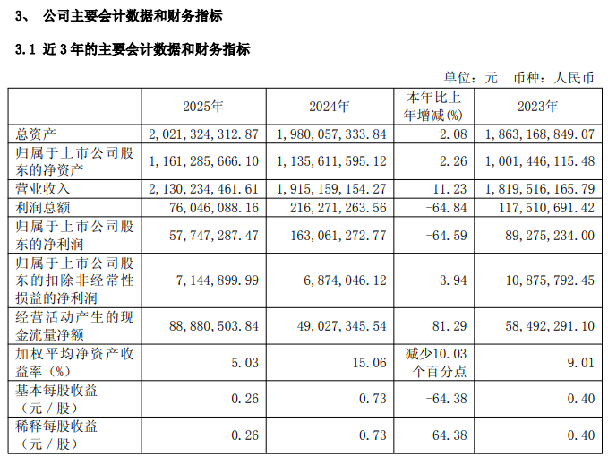 2024年,公司及子公司收到大额房屋征收补偿款,合计约1.69亿元的非流动性资产处置损益,直接将当年归母净利润推高至1.63亿元。这份天降红包难掩公司主营业务盈利能力的真实面貌。2025年,该项收益大幅缩水至约5187万元,降幅达69.3%,成为净利润断崖式下跌的核心原因。